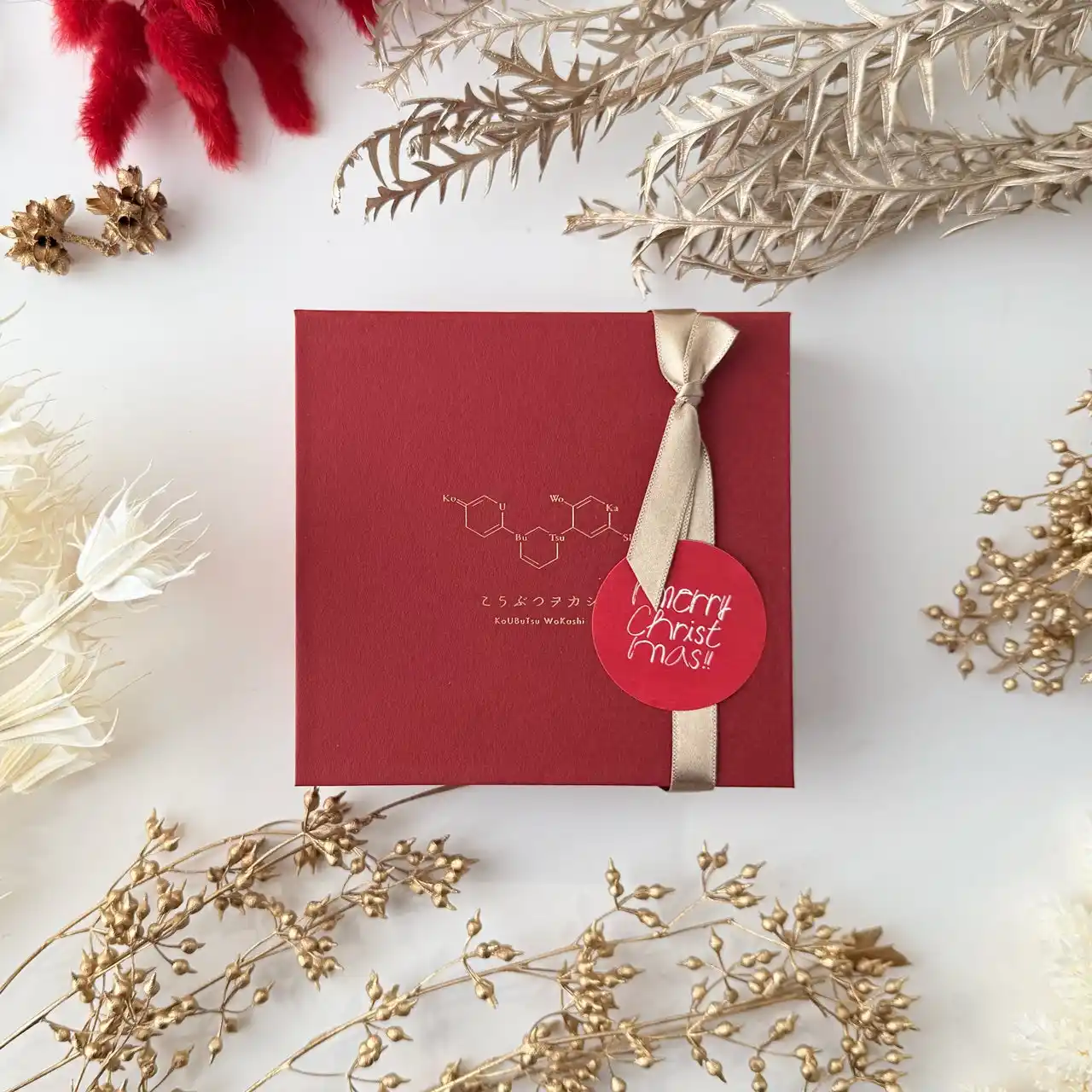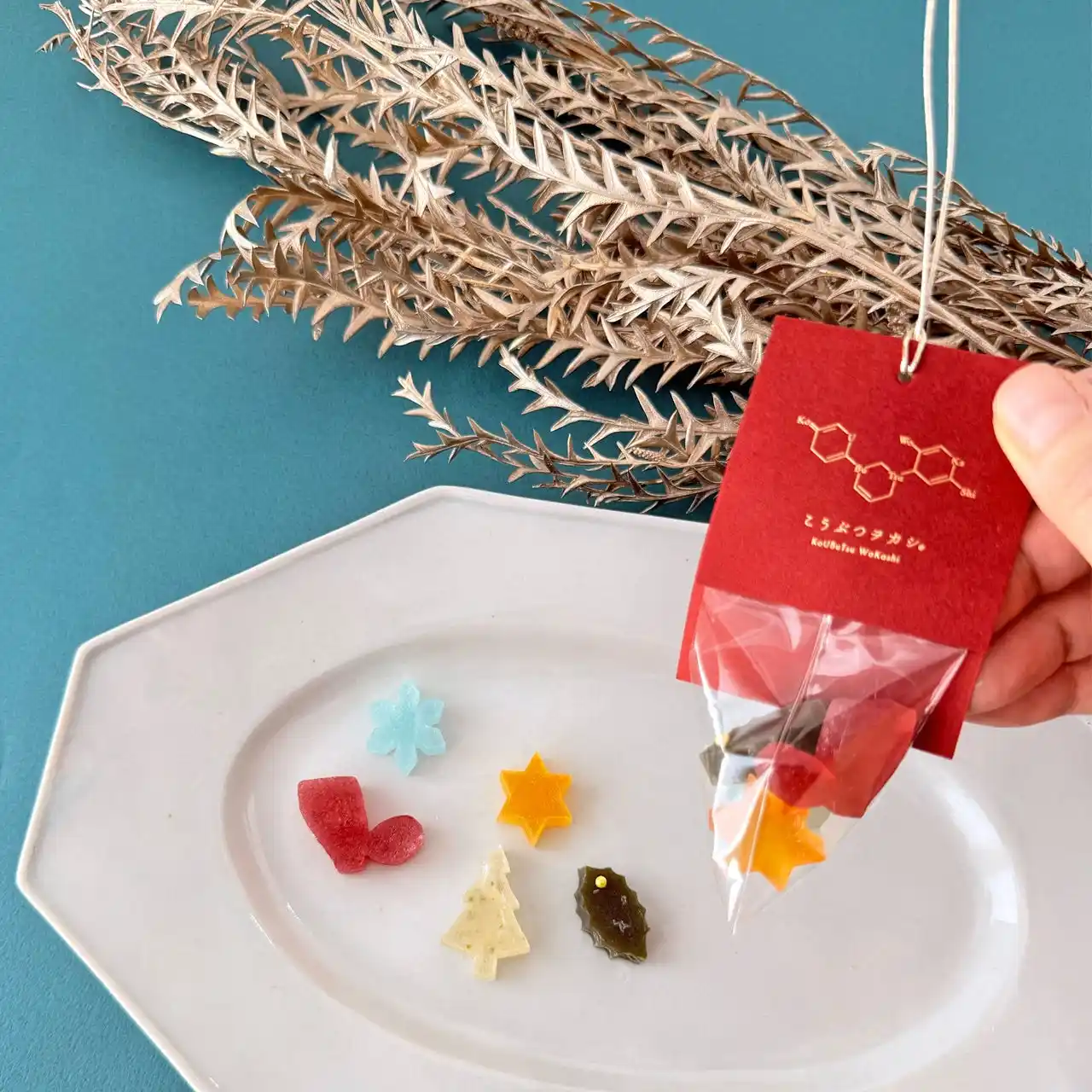 | 冬のきらめきを閉じ込めた冬季限定の琥珀糖が登場。赤いカシスのルビー、ホワイトチョコとラムレーズンが香る水晶、カラメルのトパーズ、ブルーベリーのアメシストなど、神秘的な宝石をモチーフに切り出した琥珀糖を、赤いボックスに詰め合わせました。小さな雪の結晶やツリーのモチーフ、クリスマスカラーのドライフラワーを添え、冬の贈り物にぴったりの一箱です。クリスマスカード1枚付き。 | ||||