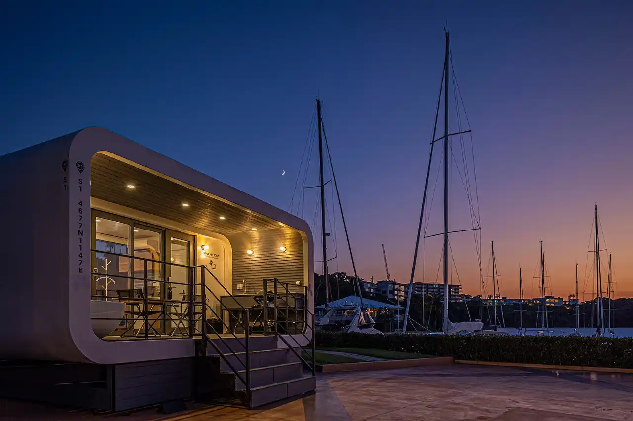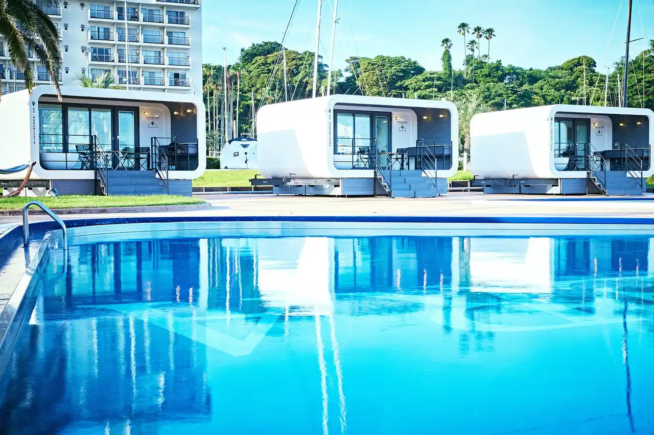 オーシャングランピング宿泊施設「スペースキーポイント」。完全貸切制のテントサウナでハーバー越しのサンセットと富士山に癒されながらととのう極上時間や、焚火を囲んでのスモアやプライベートデッキでの鍋など、冬ならではのグランピングをご堪能いただけます。 |