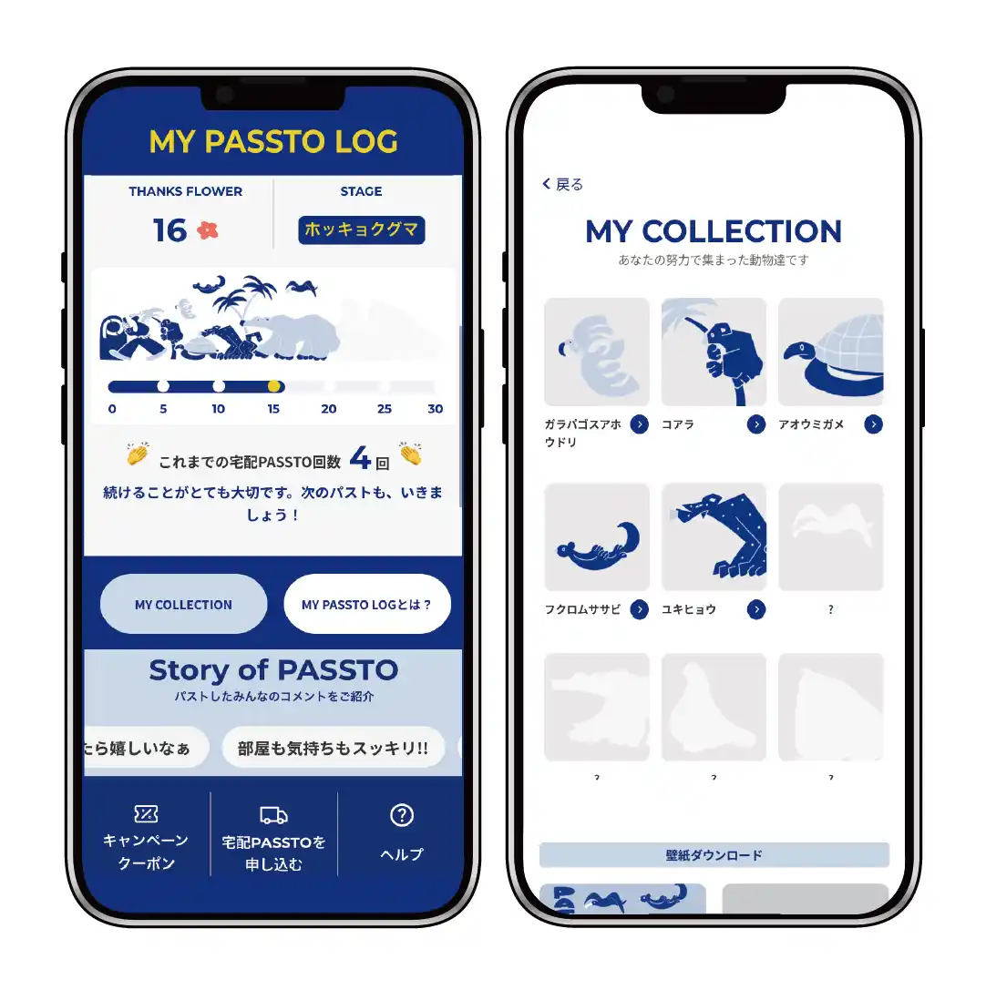 特定のステージをクリアした際は、PASSTOミニアプリ限定の壁紙をダウンロードできる特典も用意しており、楽しみながら地球の未来のための循環アクションに参加することができます。 |