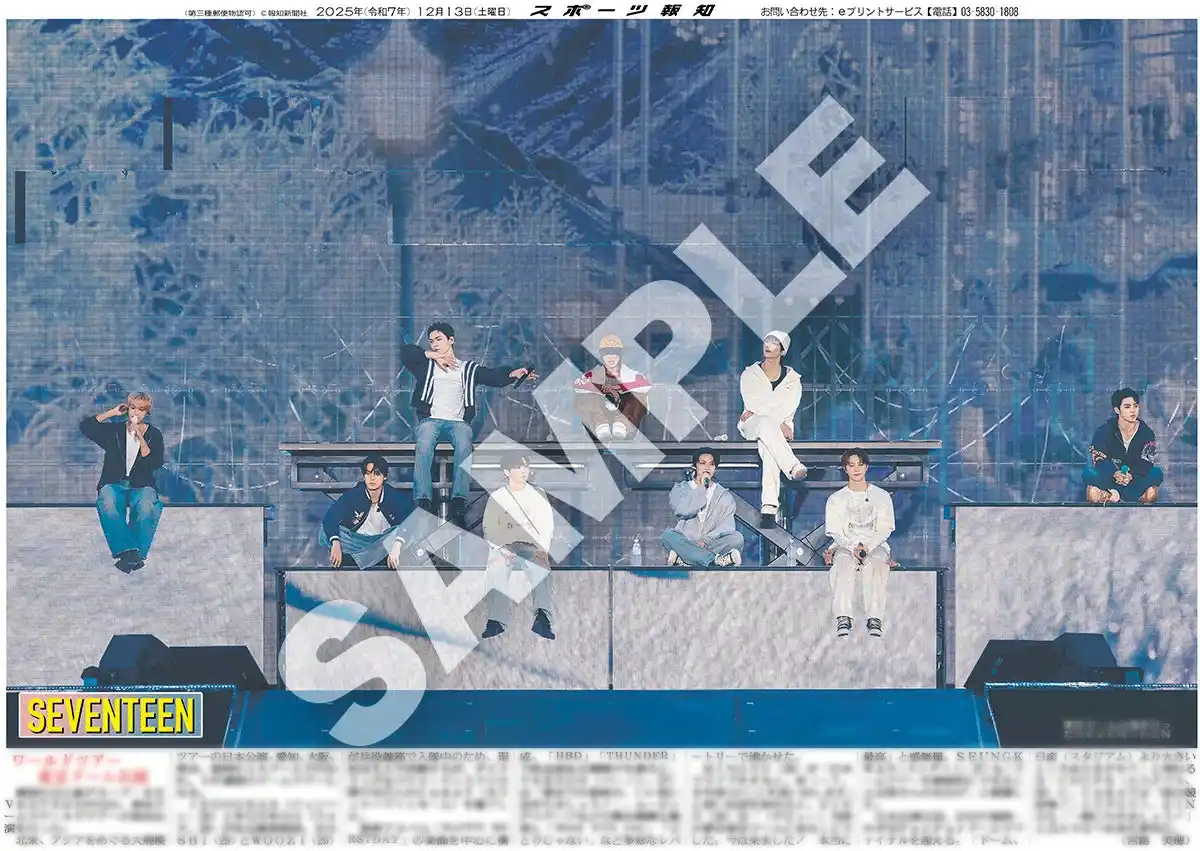 | スポーツ報知を発行する報知新聞社(代表取締役社長・長谷川剛)は新聞の一部紙面をコンビニエンスストアのマルチコピー機からプリントできる「スポーツ報知コンビニプリント」サービスを展開中。スポーツ紙ならではの大きな写真を使った紙面をプリント版として販売しています。新たに12月13日付掲載、東京ドームでワールドツアーの東京公演を行った韓国の13人組グループ「SEVENTEEN」の紙面を発売中です。全員バージョンと各ソロバージョン11種類になります。 | ||||||||||||||