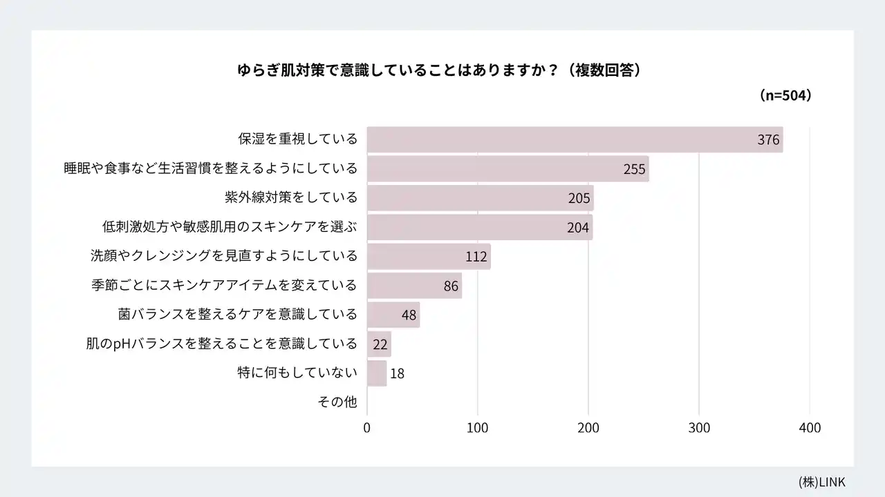 | 【設問】ゆらぎ肌対策で意識していることはありますか?(複数回答/n=504) | ||||||