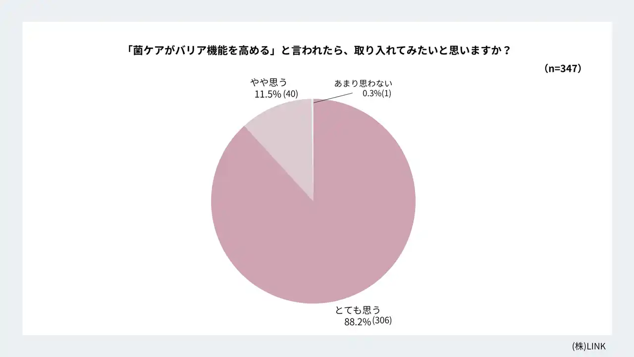 | 【設問】菌ケアが「バリア機能を高める」と聞いたら取り入れてみたいと思いますか?(n=347) | ||||||