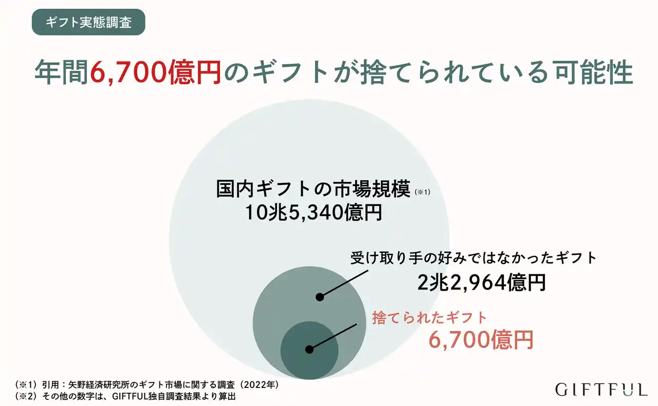 (調査結果詳細:捨てられるギフトは年間6,700億円。「GIFTFUL」が廃棄ギフトの実態を調査) |