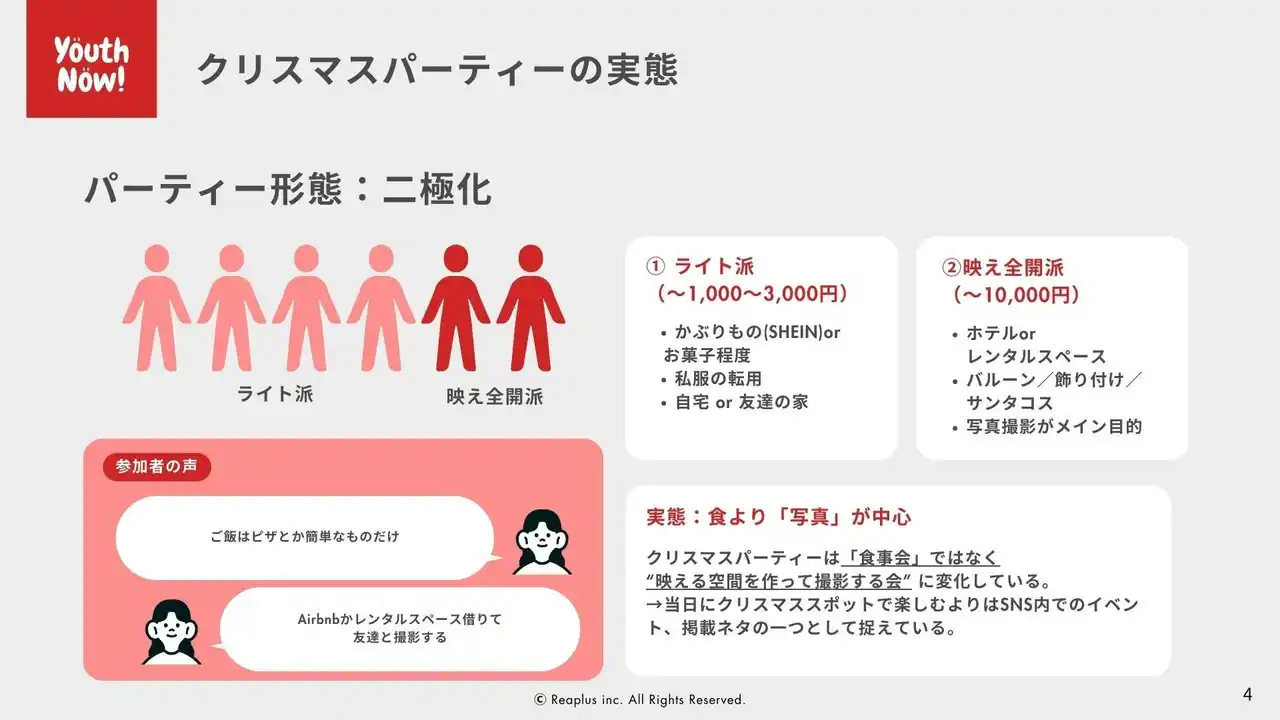 | 調査名 :【Youth Now! トレンド調査】クリスマスにおける若年層の参加/消費意識 | ||||||||||||