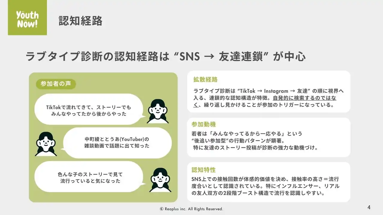 | ラブタイプ診断の認知経路は “SNS → 友達連鎖” が中心 | ||||||||||||