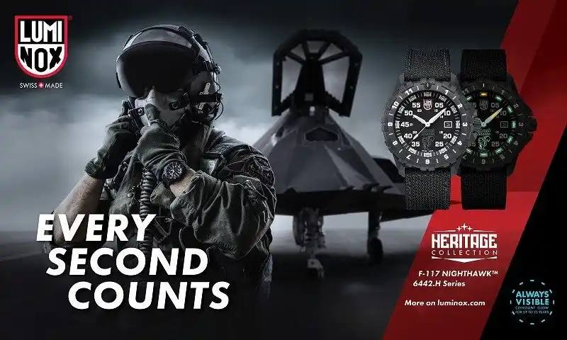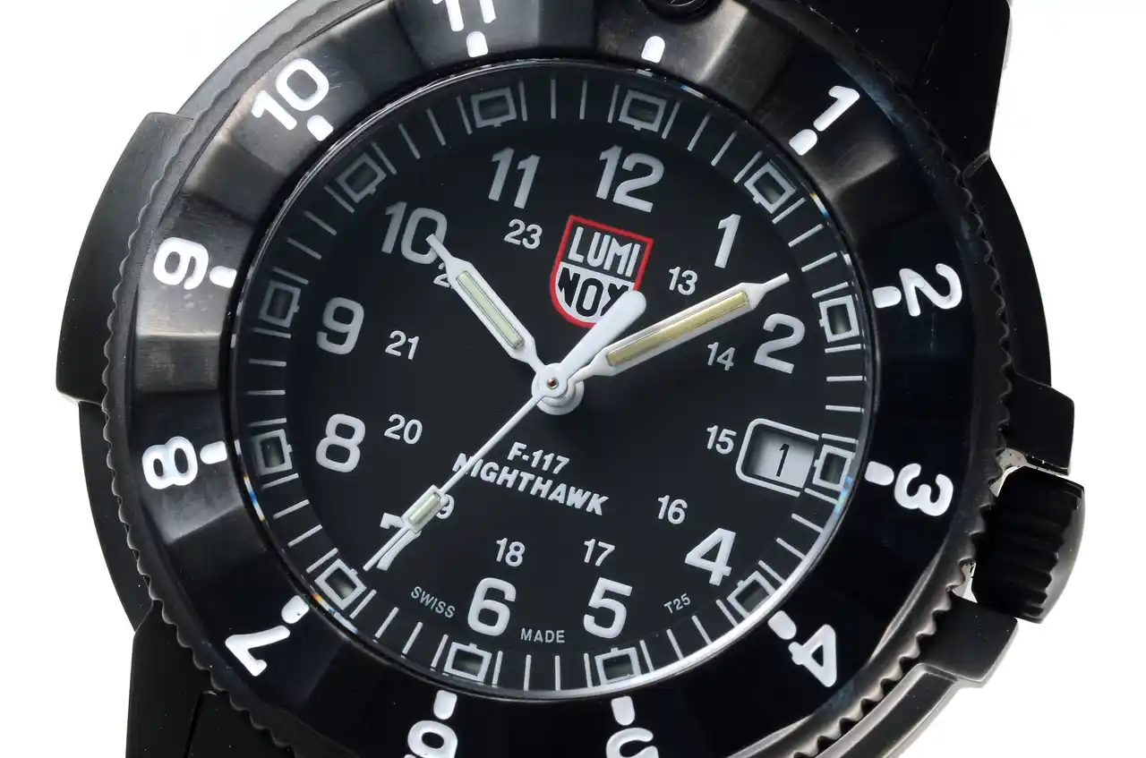 ルミノックスならではの、重厚感溢れるステンレススティールのケース・ベゼル・ブレスレットが印象的なF-117ナイトホークモデル。ナイトホークの機体の特徴であるステルス性能をイメージしたブラックデザインは、当時ミリタリーファンのみならず幅広い層から爆発的な人気を集め、発売時には欠品が続出しました。 |