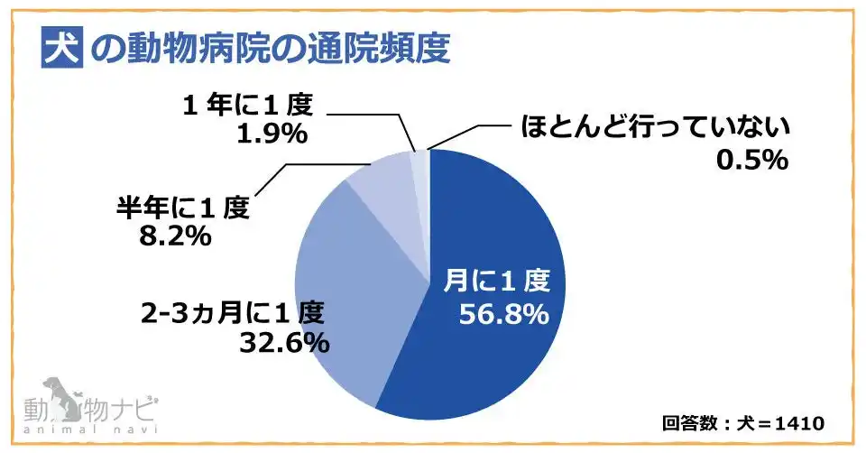 犬は予防医療で通院が定着。約9割が2~3ヶ月に1回以上通院 |