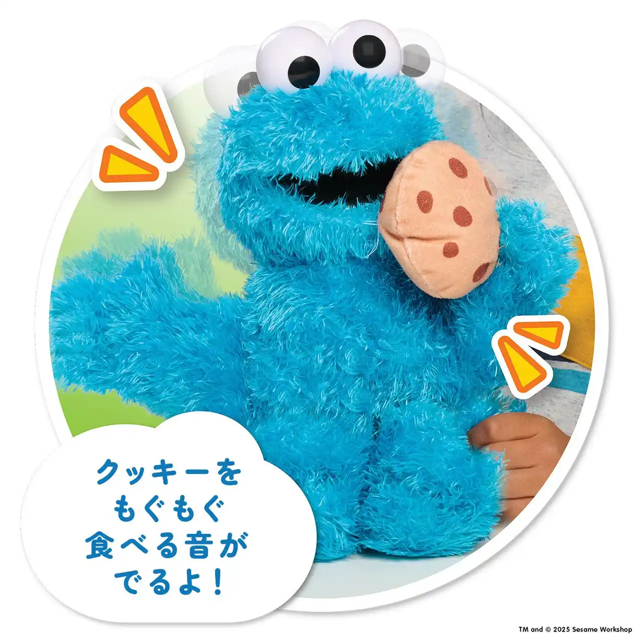 クッキーを食べるのが大好きなクッキーモンスターは、お腹を押す(軽く触る)と、体が揺れてクッキーを食べる音や笑い声が流れます。 |