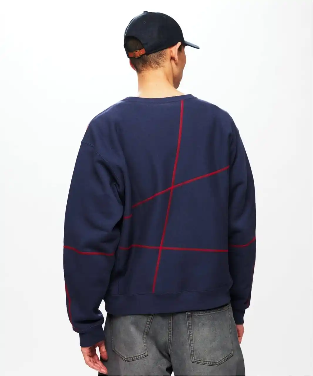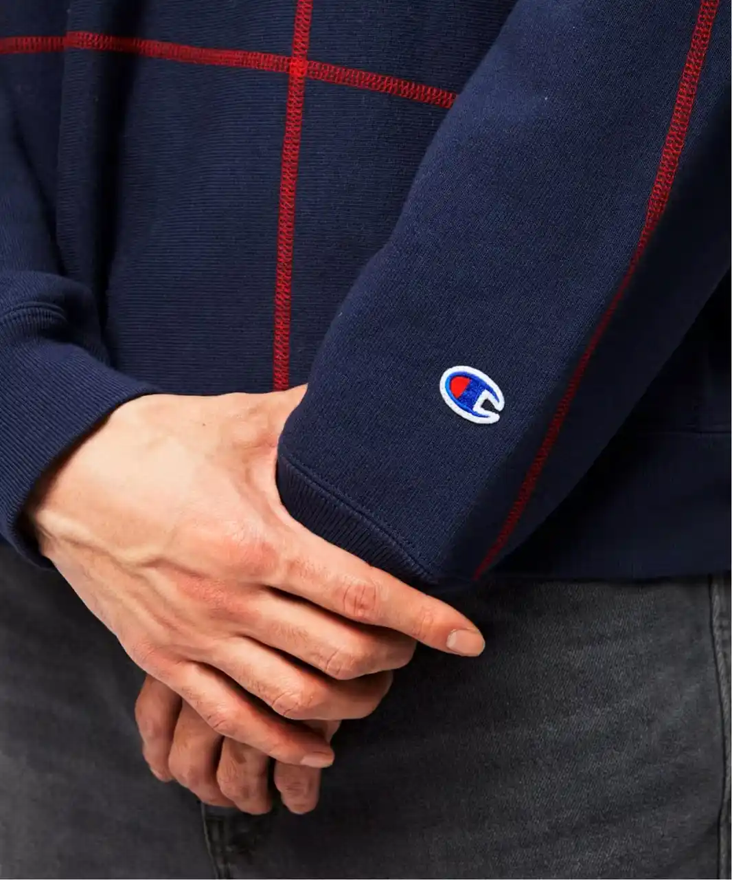 通常の仕様を逸脱するように施されたステッチは、デザインとしてリバースウィーブに新たな表情を与える。 |