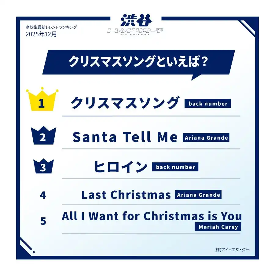 | 【イマドキ高校生の最新!クリスマス調査】定番クリスマスソングTOP10の発表!今月のネクストトレンド「バターベア」とは…?高校生最新トレンド2025年冬!渋谷トレンドリサーチ |