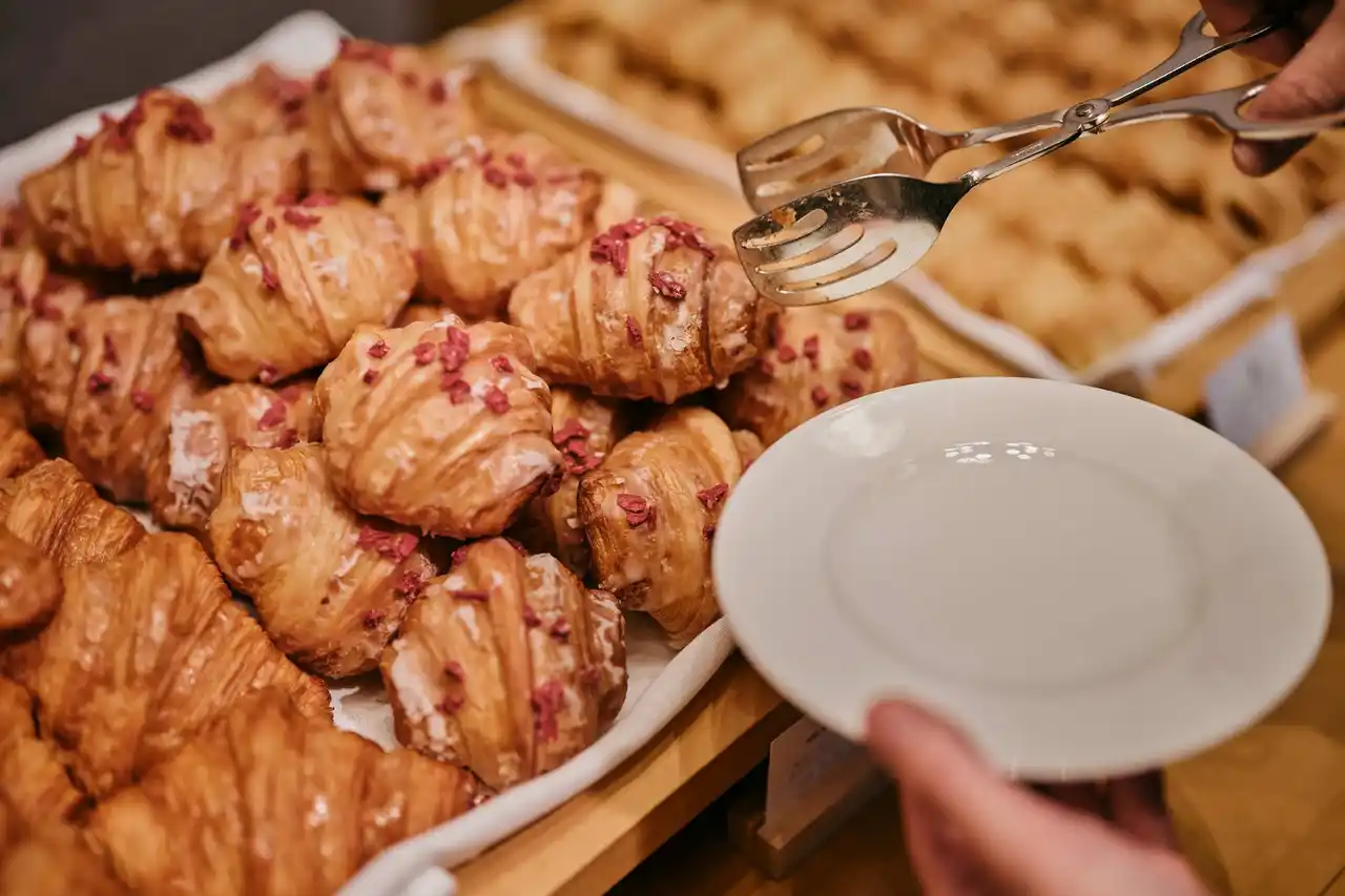 会場で提供された朝食ブッフェは、協賛・協力企業の皆さまより提供された飲料や食材一つ一つによって構成されており、宴会場「TAKANE」では、部門を超えて集まったスタッフが配膳や会場運営を担い、サービスの枠を超えたホスピタリティを体現する一日となりました。 |