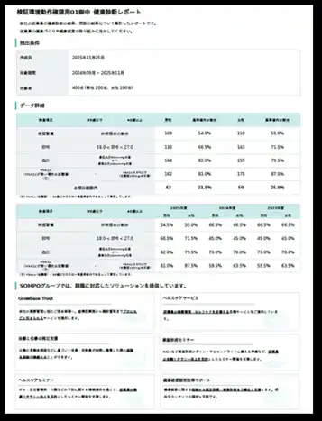 「健康診断レポート」で企業の健康課題の可視化ができ、健康経営(R)の推進を支援します。 |
