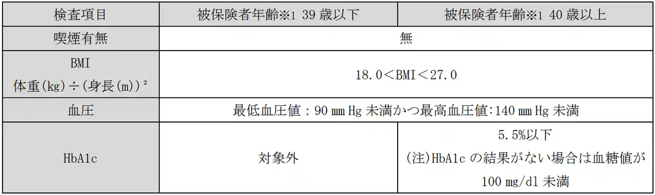 健診優良者の判定条件(下表すべてに該当する方を健診優良者とします) |