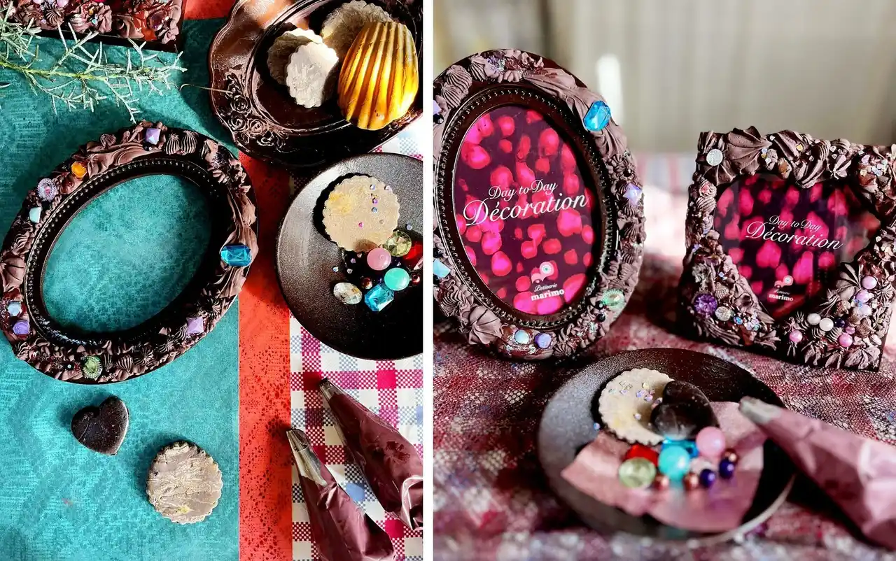 現在開催中の企画展3「目と感覚でお菓子を味わう ~日々を彩るパティスリー marimo~」を手がけたアーティスト・吉田マリモさんによる、チョコモチーフのアートフレームを作るワークショップを開催します。大人もときめくデザインで年齢を選ばず、小さなお子さまから大人まで、お家で飾れるお菓子なフォトフレームを作ることができます。樹脂のチョコレートクリームを絞ったり、モチーフを飾り付けて、自分だけのフレームを誰でも気軽に作って楽しめるアート体験です。 |
