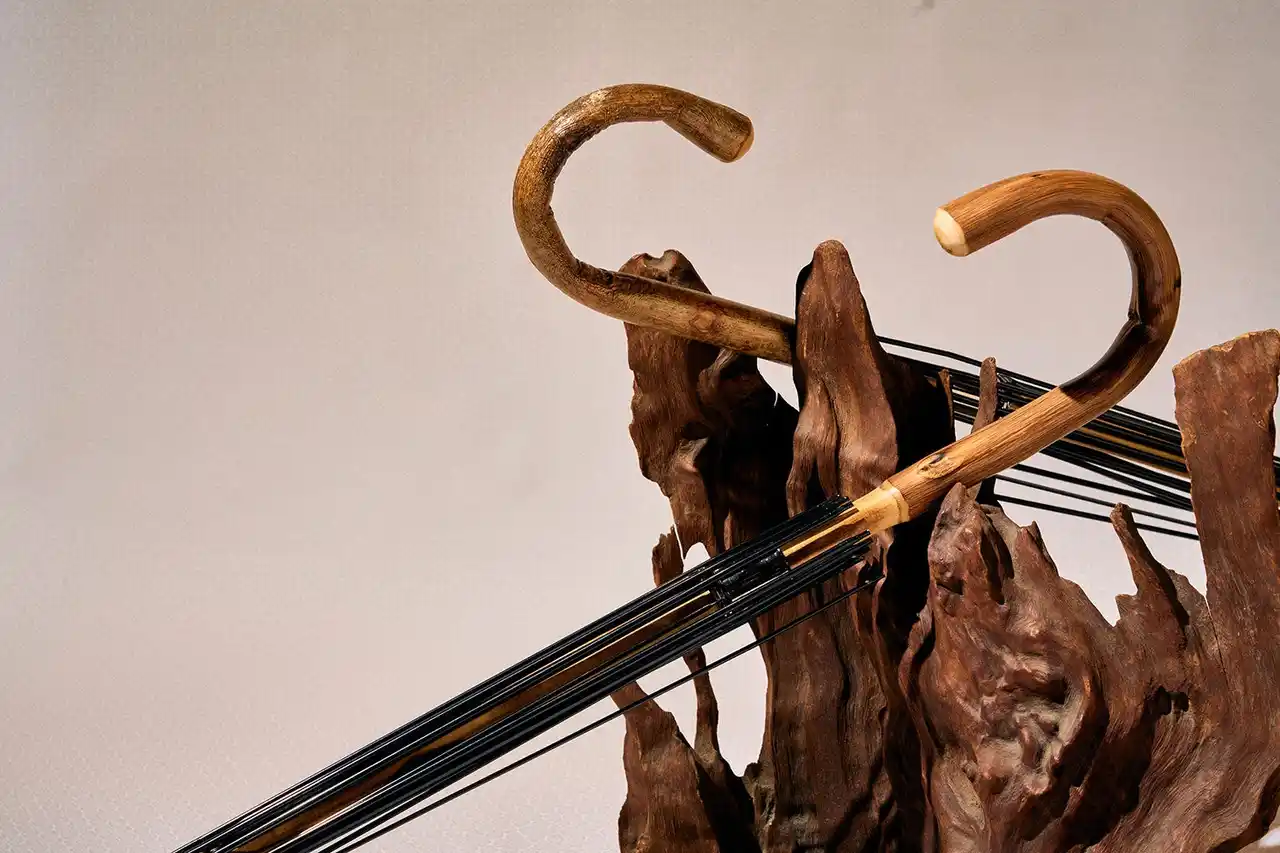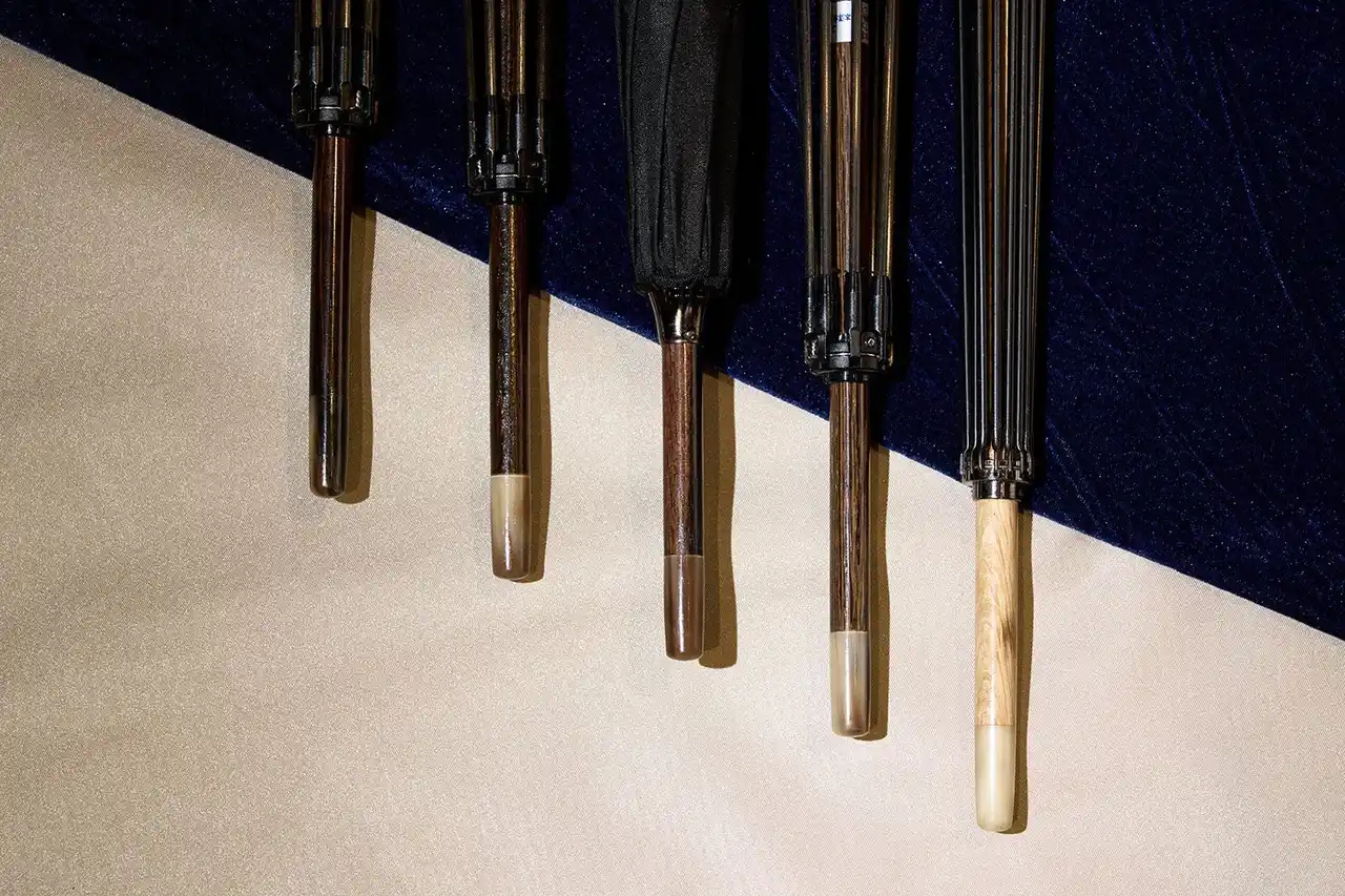 伐採規制や輸出入制限により流通量が減少しており、傘骨への加工には高い技術を要し、極めて希少な素材です。また、傘先の「石突」には現在では新たに製造できない水牛角を使用しています。 |