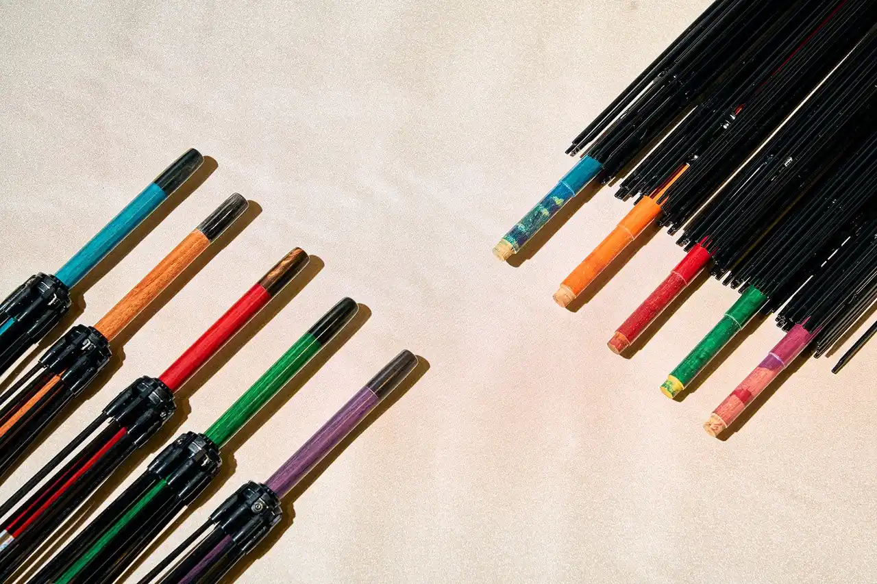 鉄刀木(たがやさん)・黒檀・紫檀・花梨・ボコーテなどの唐木を使用した中棒 |