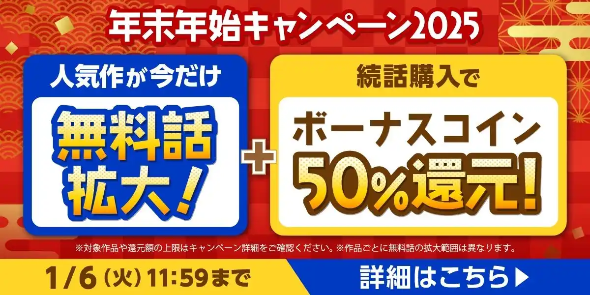 | 本キャンペーンでは年末年始にpixivコミックでより一層マンガをお楽しみいただける5つの企画を展開します。2025年にpixivコミックで最も人気のあった作品の発表や、全話無料開放、ボーナスコイン還元キャンペーンやお得なクーポン配布など、たくさんの作品に出会える企画が目白押しです。 | |||||||