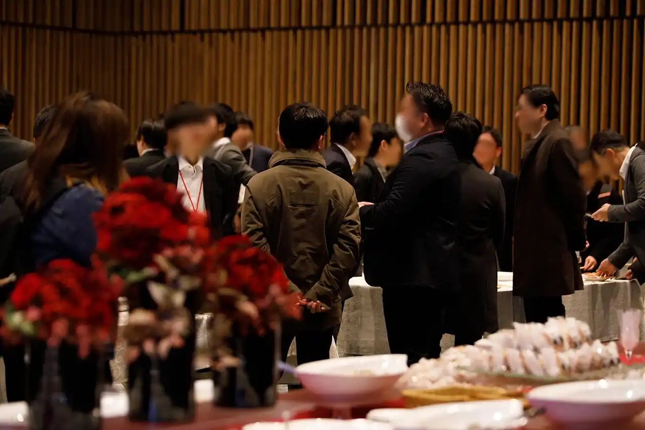 全プログラム終了後、毎年好評の懇親会「ベクターフェスタ」を展示会場にて開催しました。 多くの参加者が引き続きご参加くださり、ご来場者様にはアルコールや軽食を楽しみながら製品展示をご覧いただき、ベクター社員や出展企業様、そしてお客様同士の交流が自然と生まれ、技術・情報交換の輪が広がる懇親会でした。 |