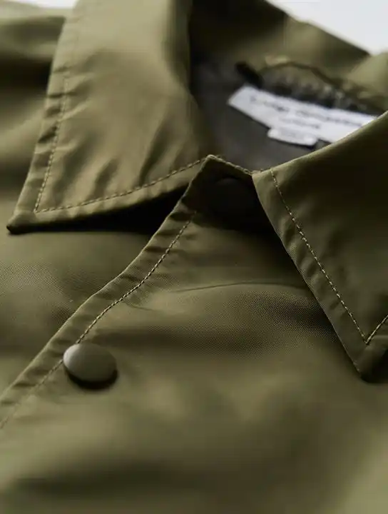ナイロンタフタが用いられることが多いコーチジャケットに、よりハイゲージで高密度で織り上げた |