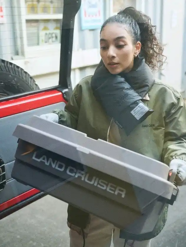 カラーはランドクルーザーの「アバンギャルドブロンズメタリック」をイメージした別注色。前作と同じカラー・デザイントーンのため、組み合わせて使用することで統一感のあるセットアップが完成します。本商品では両サイドにランドクルーザーロゴをあしらい、特別感を添えました。 |