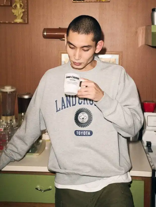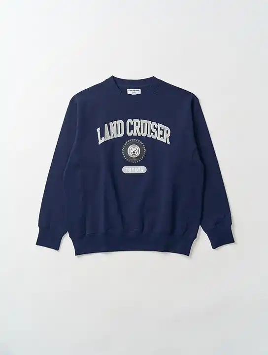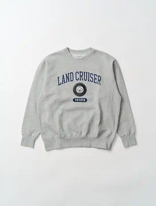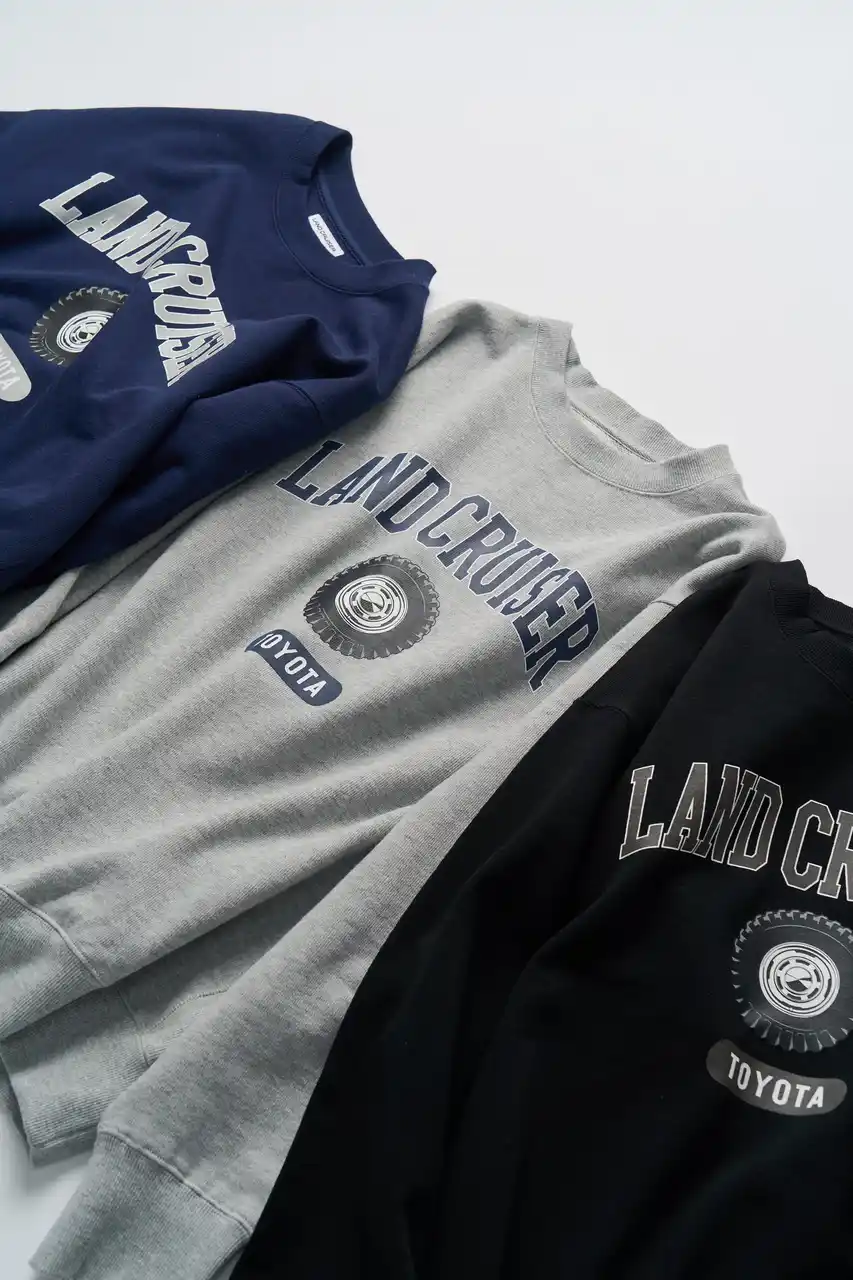 <クラシックなパターンに、カレッジロゴ風にアレンジしたランドクルーザーのシグネチャーホイールを組み合わせた、ヘビーウェイトスウェット> |