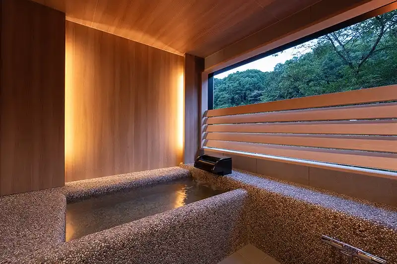 | 寒い冬にこそご堪能いただきたい当館の天然ラドン泉は、その希少性と効能により真のウェルネス体験を味わっていただけることでしょう。メインの大浴場では自然と一体化した開放的な環境を、屋上の3タイプの個室露天風呂では完全にプライベートな温泉体験を、別館「金泉の湯」では野趣に富んだ岩風呂での特別な入浴体験をご堪能いただけます。 | |||||||||||||||||||