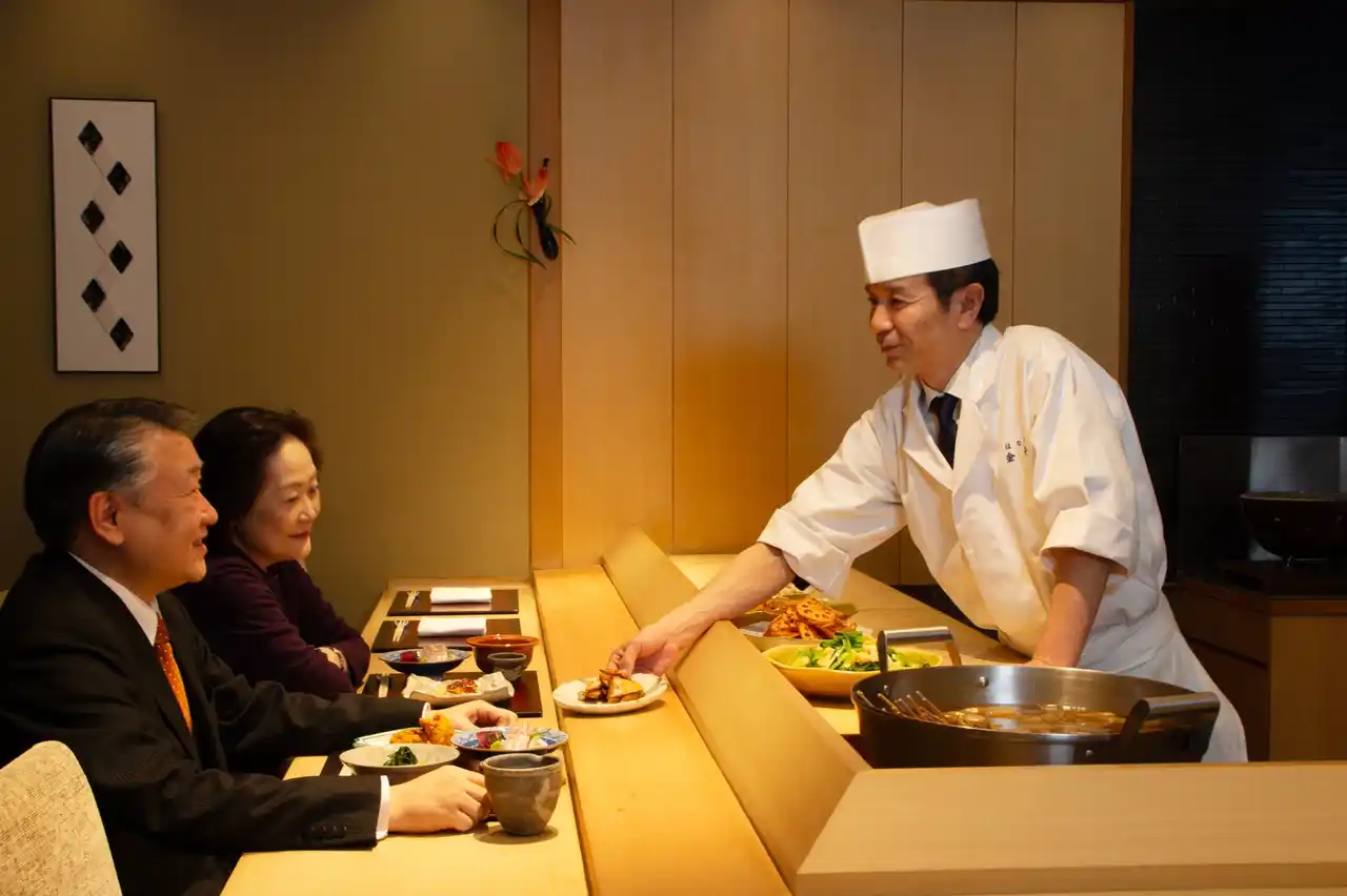 東京の数々の名店も仕入れを行う山口県萩市大坂屋商店から直送される新鮮な魚介や、豊かな自然が育んだ食材を料理長自ら目利き。旬のふぐを薄造りにしたふく刺しや、昆布だしで仕立て繊細な旨みを活かすふくちり鍋、歴史を記憶する華やかな岩国寿司、料理長金井がアレンジした山口の郷土料理など、昼も夜も福を重ねる万福会席をご用意いたします。 |