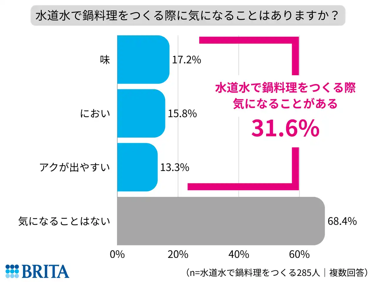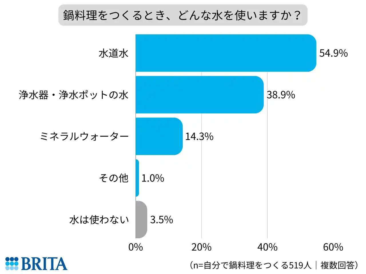 ※調査結果の数値は小数点以下を適宜四捨五入して表示しているため、積み上げ計算すると誤差がでる場合があります。 ※調査結果をご紹介いただく際は、「BRITA Japan調べ」と注釈をご記載ください。 |