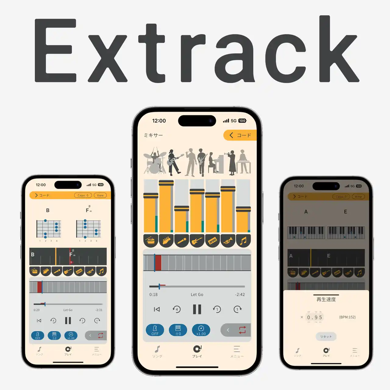 「Extrack(エクストラック)」は、好きな楽曲をまるで本物のアーティストと一緒に演奏しているかのような臨場感を味わいながら、楽器練習やセッションを楽しめるiOS/Android対応の音楽アプリです。コラボ期間中、アニメ「ぼっち・ざ・ろっく!」に登場する楽曲がデモソングとしてプリインストールされ「Extrack」で一緒に演奏をお楽しみいただけます。 |