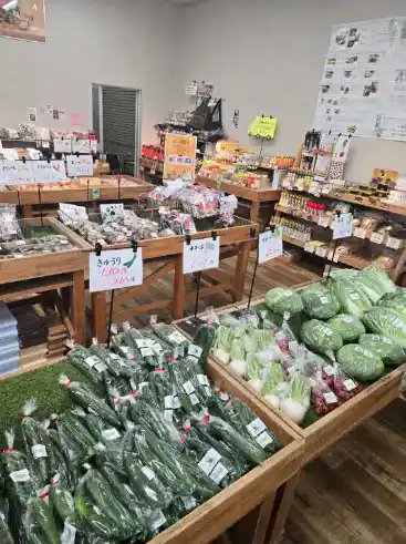 産直の新鮮な野菜や特産品の柑橘類(秋から春)も人気! |