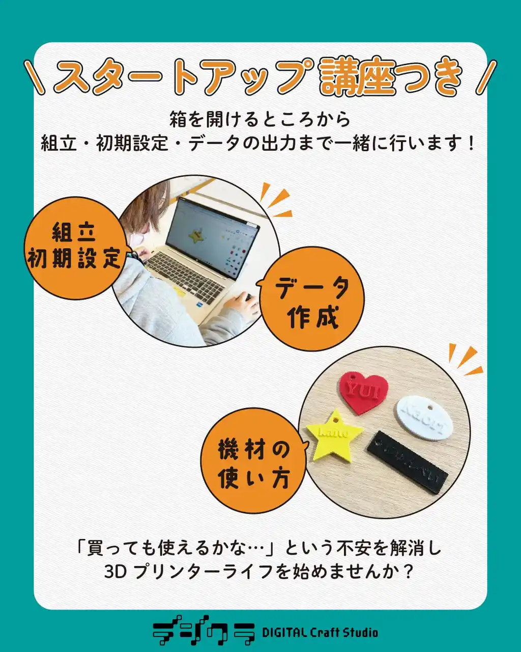 購入時/購入後に3Dプリンターの使い方等を丁寧にお伝えします |