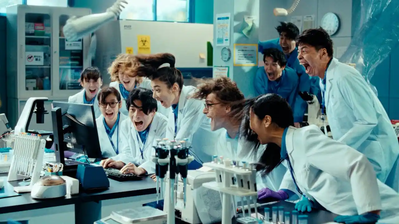 ブレイクスルーに歓喜する、新薬研究開発部員たち |