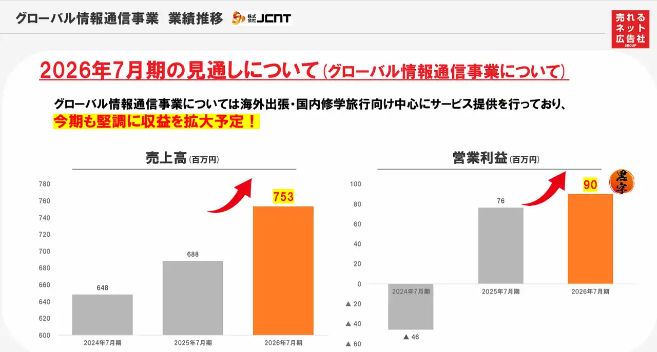 【売れるネット広告社グループ「JCNT」2026年7月期業績予想】 |