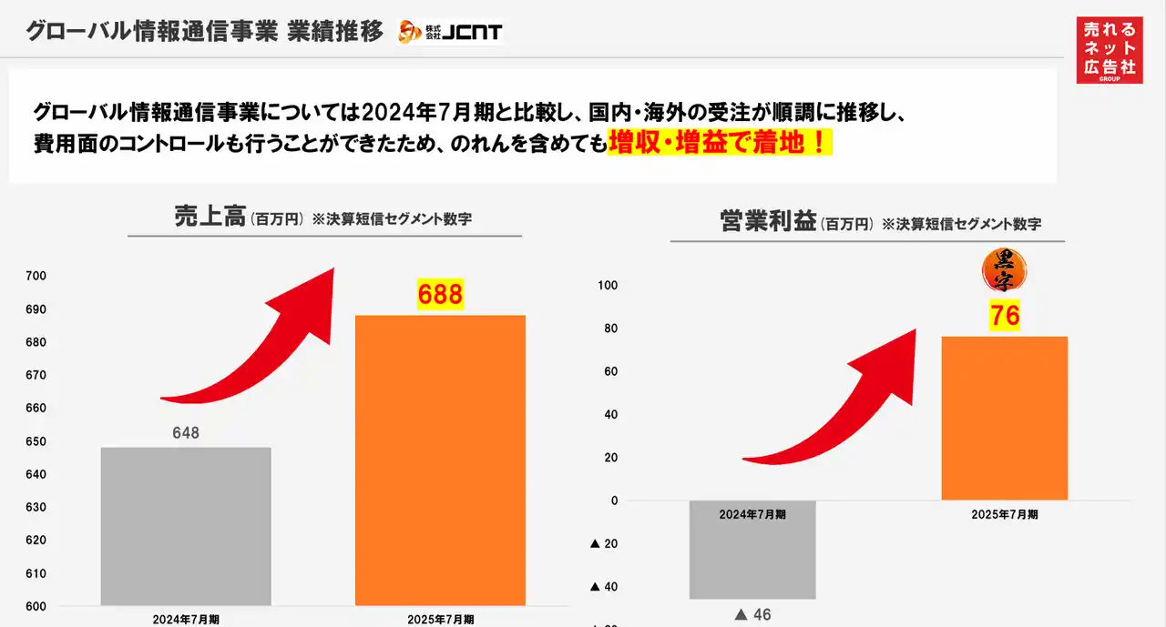 【売れるネット広告社グループ「JCNT」の2025年7月期実績】 |