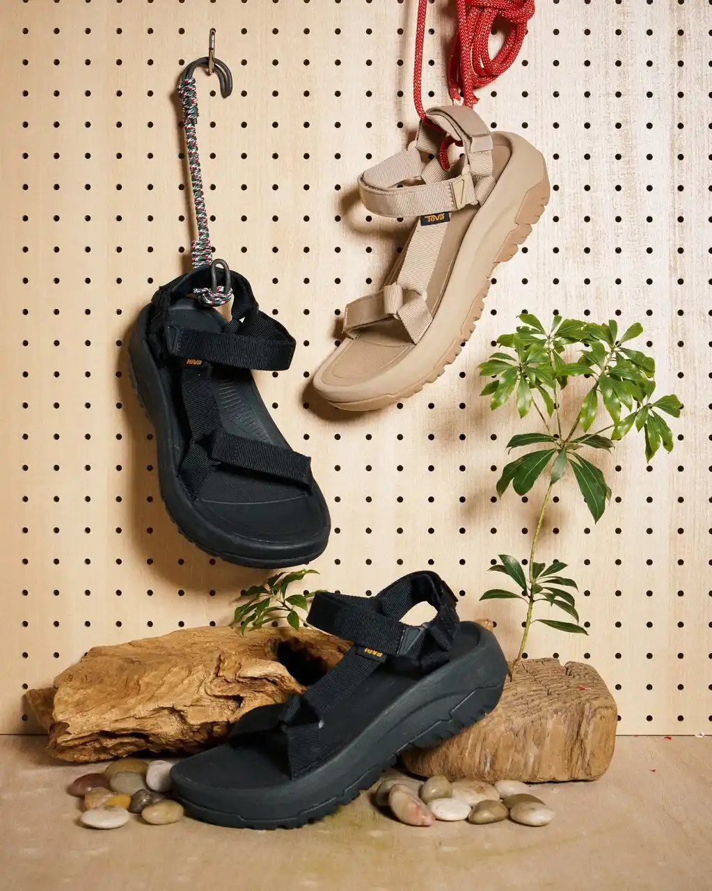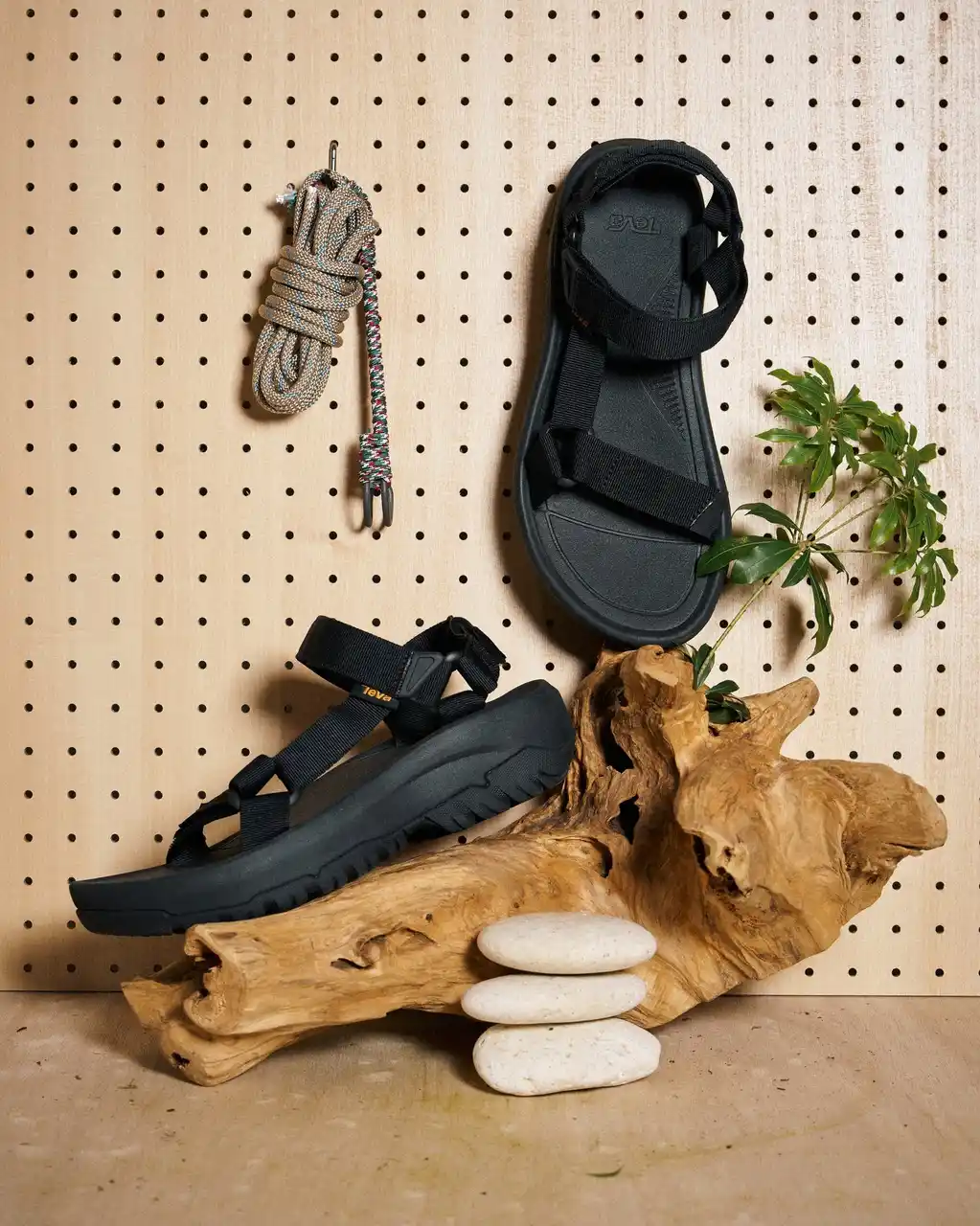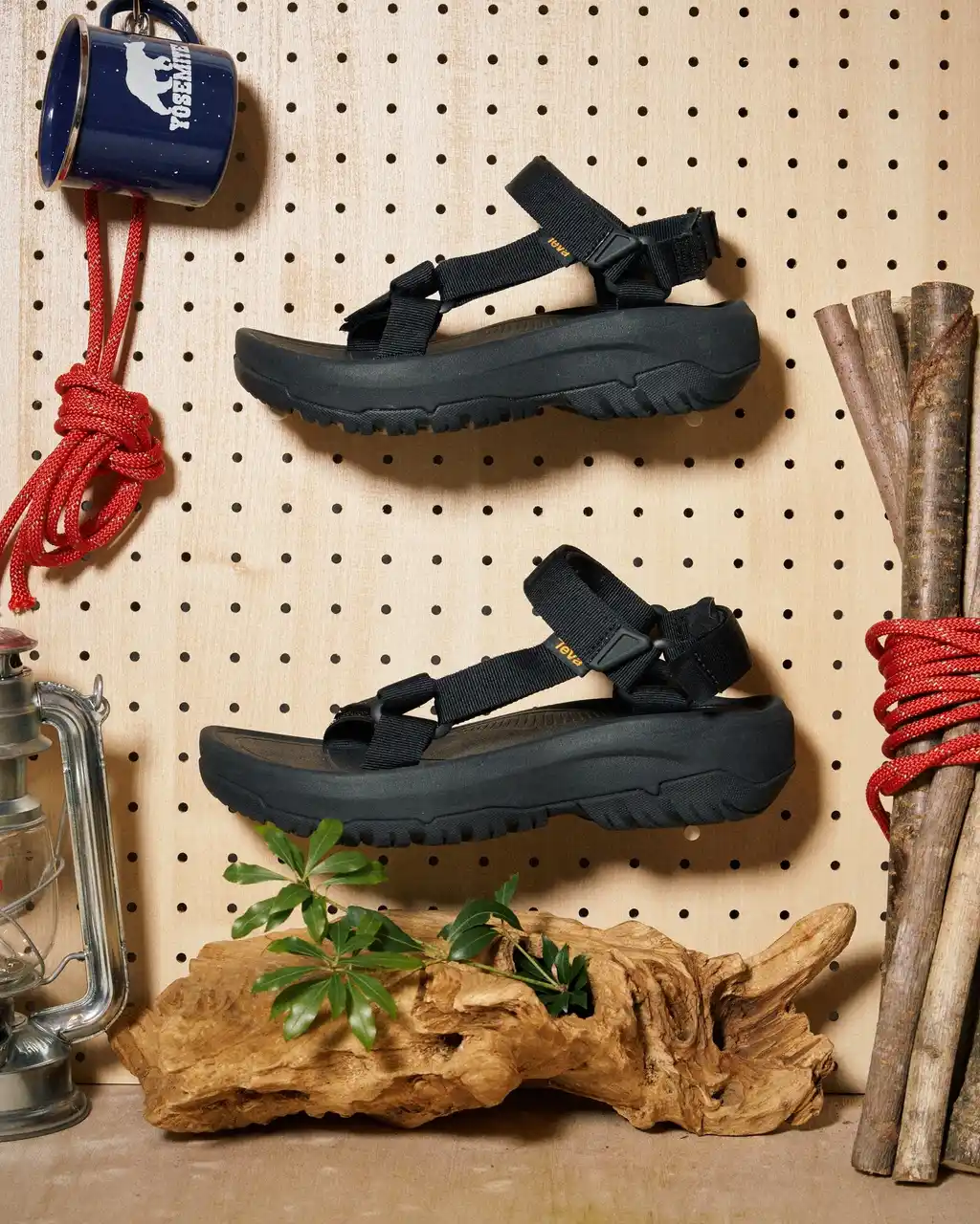 Tevaは1984年に米・グランドキャニオンで誕生。あるリバーガイドが人々を案内するのに、トングのサンダルだと容易に脱げてしまうことに困っていました。ある日、水辺でサンダルが脱げそうになったとき、彼は即席でたまたま近くにあった時計の面ファスナーのベルトをトングの緒に取り付け、サンダルが脱げにくいようにデザインしたことから、Tevaのサンダルは始まりました。新たに作るのではなく、「あるもの」で、まるでブリコラージュ的に作られたのがTevaのサンダルです。 |