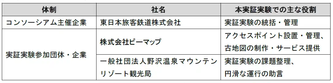 実証実験メンバーと主な役割 |