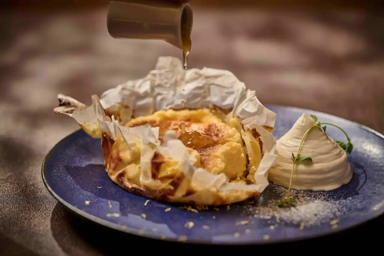 ソースは、水が綺麗な土地でしか育たない「レンゲ草」に集まる蜜蜂からできた「レンゲ草蜂蜜」と、その近くで育つ里山レモンで仕上げた蜂蜜レモンのソース。里山レモン本来の味を堪能いただけるメニューとしてシェフが開発した一品です。 |