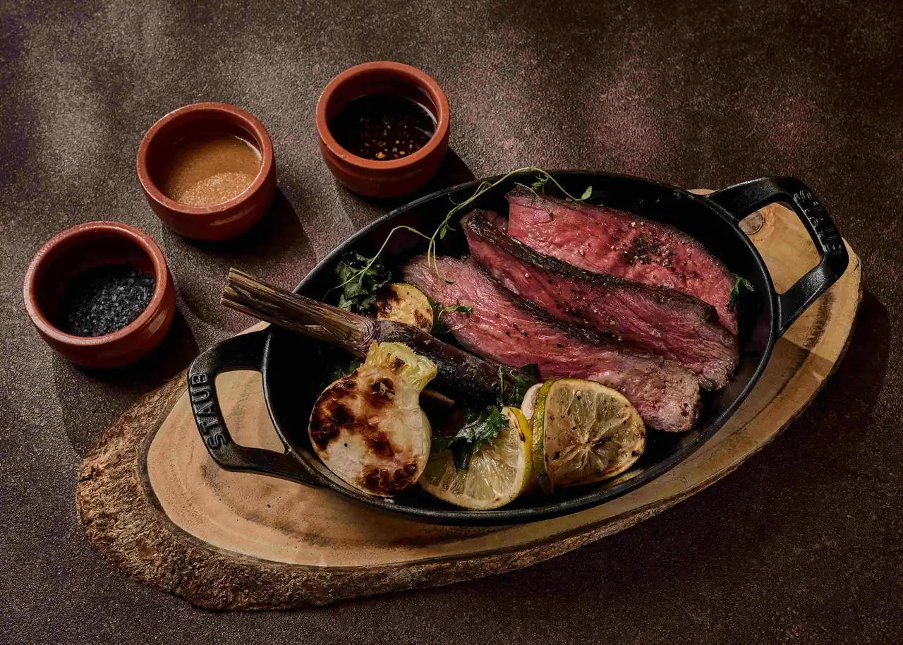 宮若の清らかな水で育った野菜と、赤身と脂のバランスに優れ、口どけの良い柔らかさが特徴の黒毛和牛「宮若牛」を、ワンプレートで贅沢に味わえる一品。炭火で焼き上げることで、旨味がぎゅっと閉じ込められ、上品な味わいをお楽しみいただけます。 |