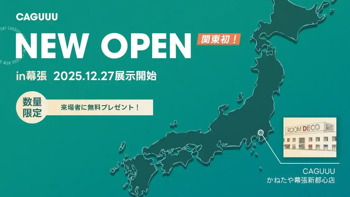 2025年12月27日(土)より、関東初となるCAGUUUの展示・販売スペースが、千葉県・幕張の家具店にオープンいたします。実際に「見て・触れて・体感」できるリアルな空間で、CAGUUUの世界観をぜひお楽しみください。 |