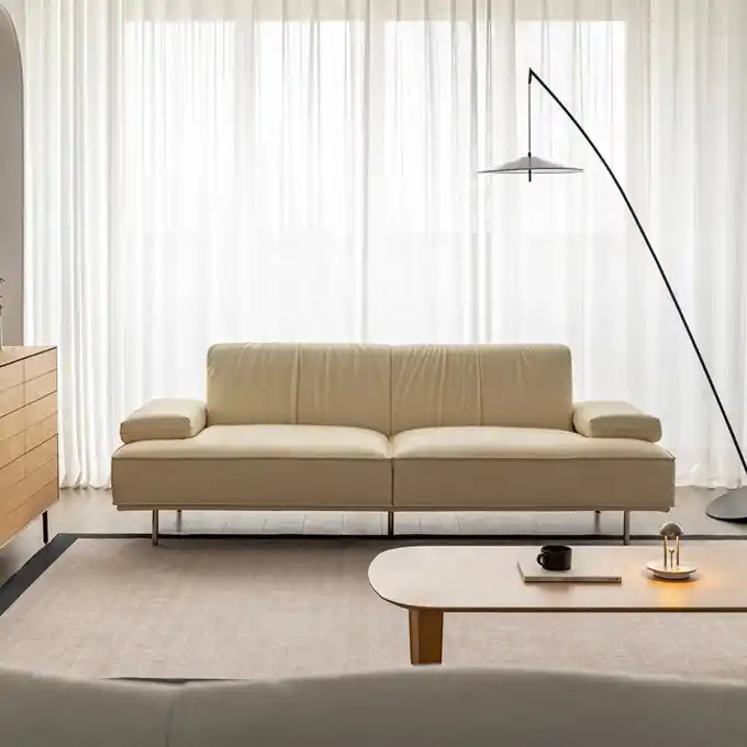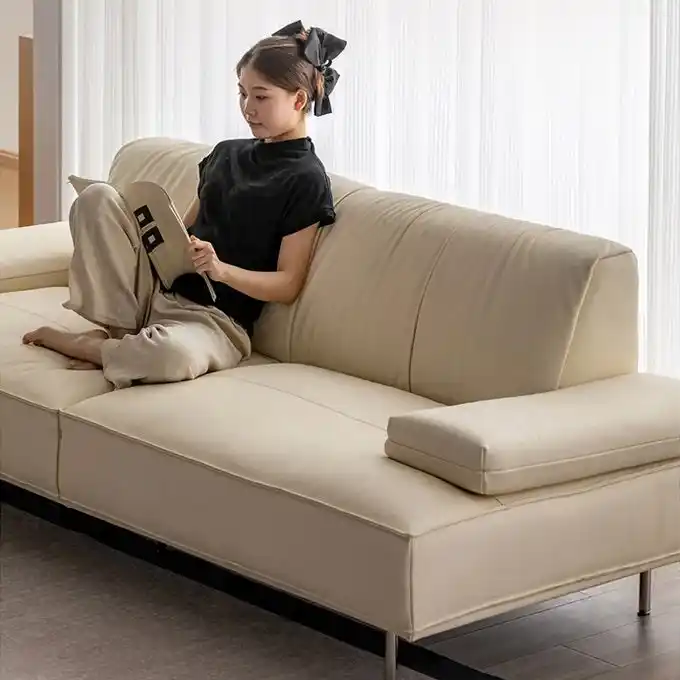 総本革を贅沢に使用した高級ソファ。65cmの広めの座面と4層クッション構造で、柔らかさとサポート性を両立し、長時間でも快適に過ごせます。ロシア産パイン材の頑丈なフレームや静音スプリングなど高耐久設計で、毎日の使用にも安心。どんなインテリアにも調和するモダンな一台です。 |