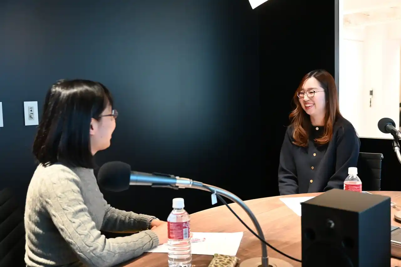 左から、城谷和代准教授、山崎世理愛講師。 早稲田大学国際文学館(村上春樹ライブラリ)のスタジオで収録。 |