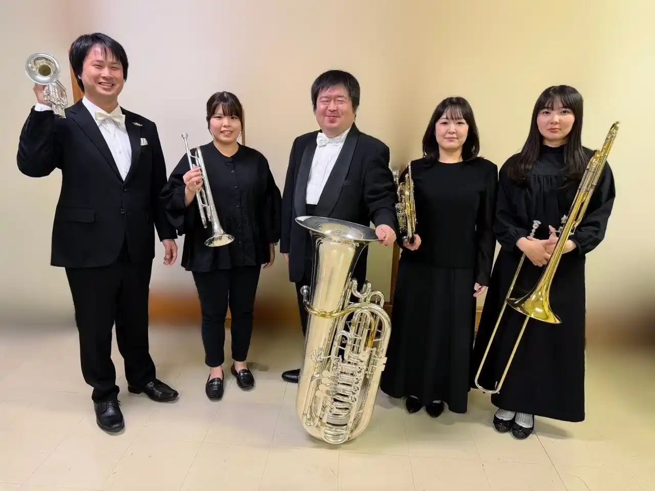 ※金管五重奏…トランペット2、ホルン1、トロンボーン1、テューバ1の金管楽器5人で編成されるアンサンブルで、金管アンサンブルの代表的な形態。バロックから現代曲まで幅広い楽譜が存在し、華やかなファンファーレから繊細な表現まで、金管楽器ならではの豊かな音色と迫力を楽しむことができます。 |