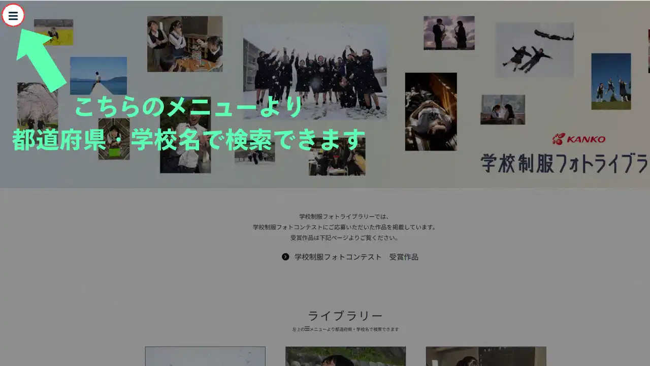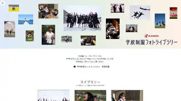 菅公学生服株式会社が主催する「学校制服フォトコンテスト」の応募作品を掲載しているオンライン写真ギャラリーです。コンテスト歴代受賞作品を含む、約1万点の作品を掲載しています。学校名、都道府県、服種等を指定して作品を検索でき、母校や志望校の制服を調べる、遠い地域に住む学生の作品を見るなど、さまざまなスタイルでご覧いただけます。 |
