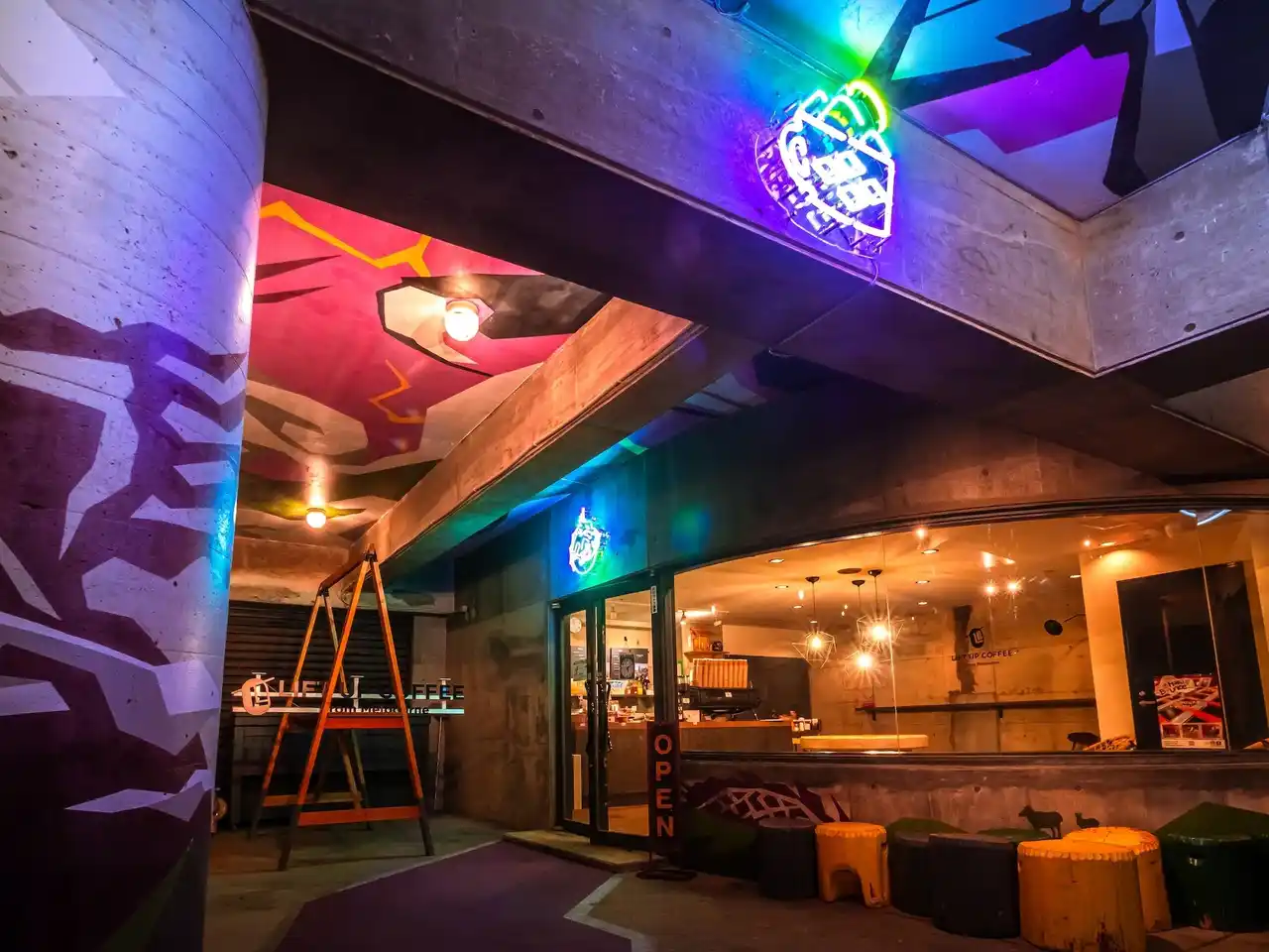 株式会社五竜(所在地:長野県北安曇郡白馬村、代表取締役社長:伊藤英喜、通称:白馬五竜)に今冬、オフィスアートのパイオニアとして知られるTokyoDex株式会社(本社:東京都世田谷区、代表:ダニエル・ハリス・ローゼン、以下「TokyoDex」)」とのコラボレーションにより、特別なアートインスタレーションが登場します。エスカルプラザ内にて冬季のみ営業するLift Up Coffeeの前のスペースが、アーティスト/イラストレーターの澁谷忠臣氏が手がけるグラフィックアートと、ネオンアーティストのはらわたちゅん子氏によるネオンサインを融合したスペシャルな空間に生まれ変わりました。 |