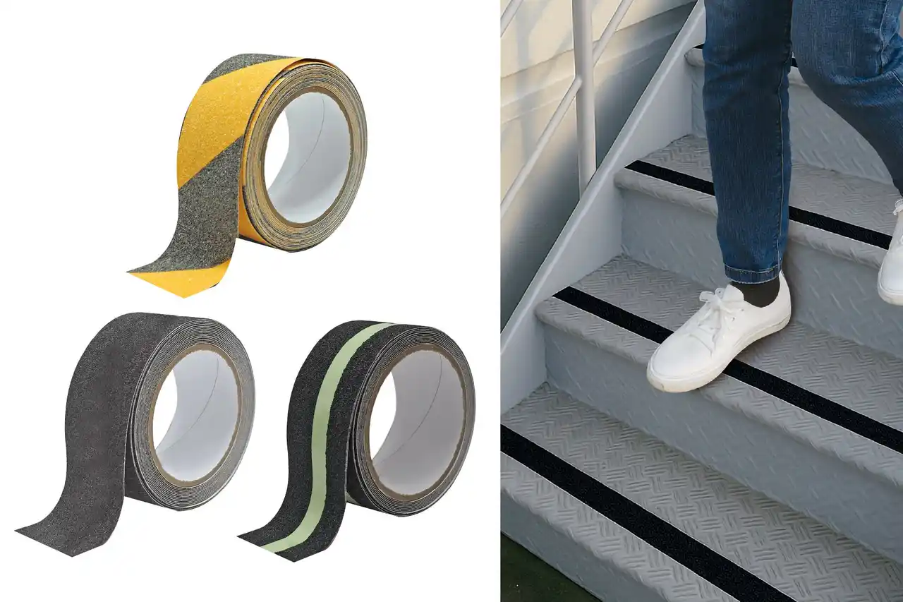 特徴:階段や玄関まわりなどに貼るだけで簡単にすべり止め対策ができる安全アイテム。必要な長さにカットして使用可能です。用途の広い「通常タイプ」や、夜間の視認性が高まる「蓄光テープ」危険個所におすすめの「トラテープ」の3種類がラインナップ。転倒防止と安全確保に便利です。 |