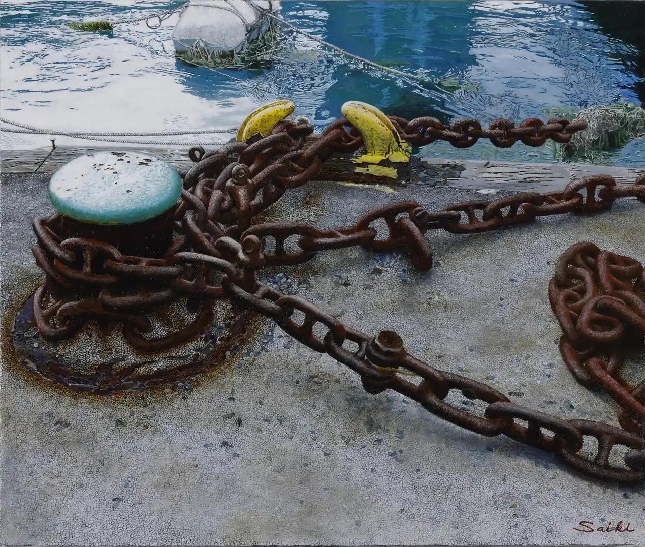 「瀬戸内海と旅」のイメージで描かれたF20号横型のアクリル画 |