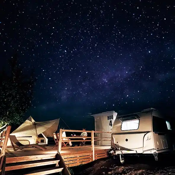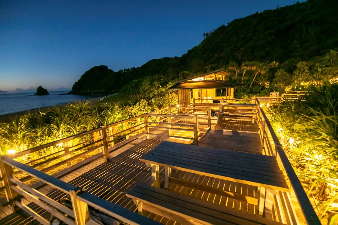本施設は、世界自然遺産・奄美大島の大和村に位置し、地下1,600mから湧き出る島内唯一の本格天然温泉です。日帰り利用はもちろん、プライベートウッドデッキ付きの本格トレーラーハウスで楽しむグランピング宿泊もご用意しております。 |