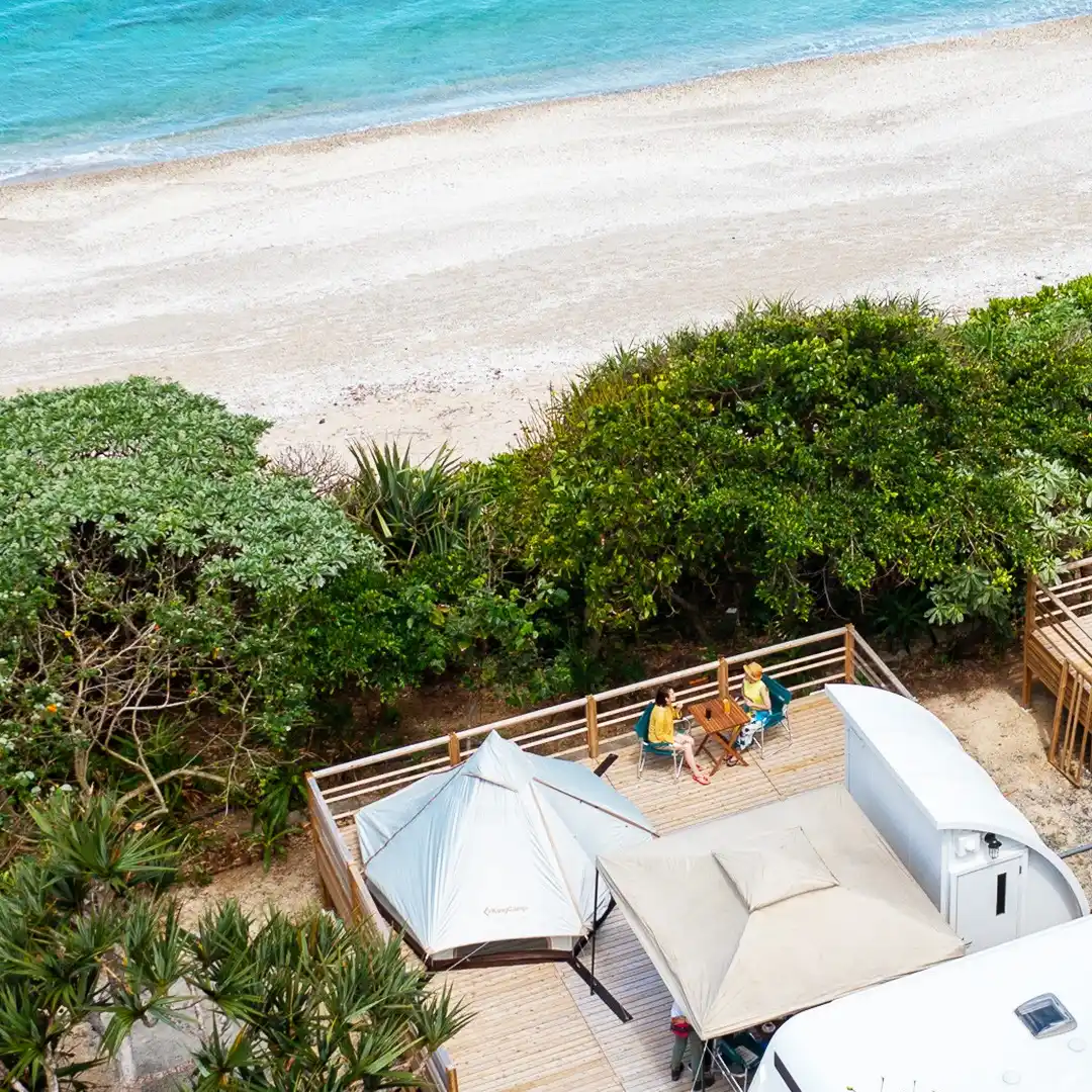 豊かな森と青く輝く海に囲まれたグランピング宿泊 |
