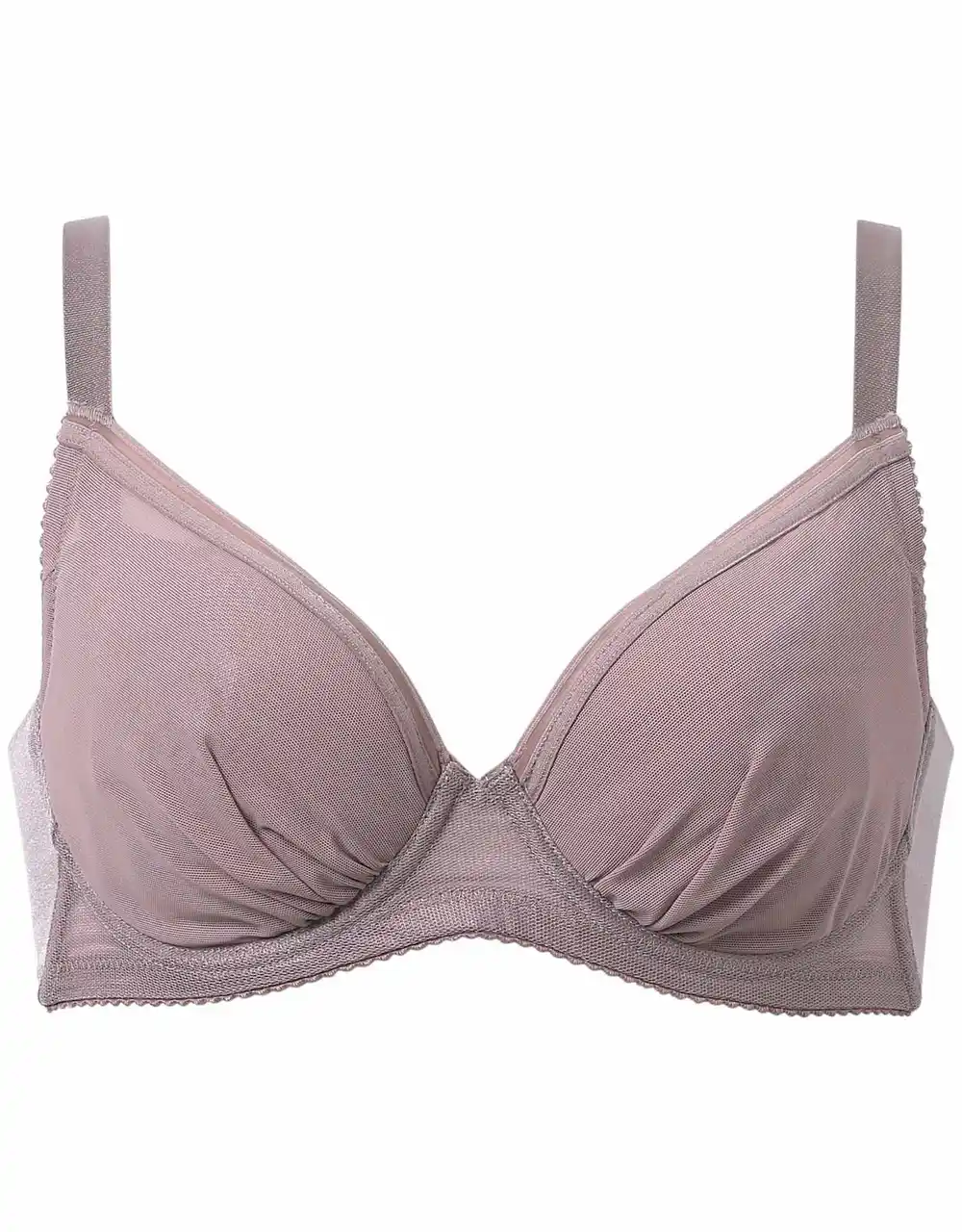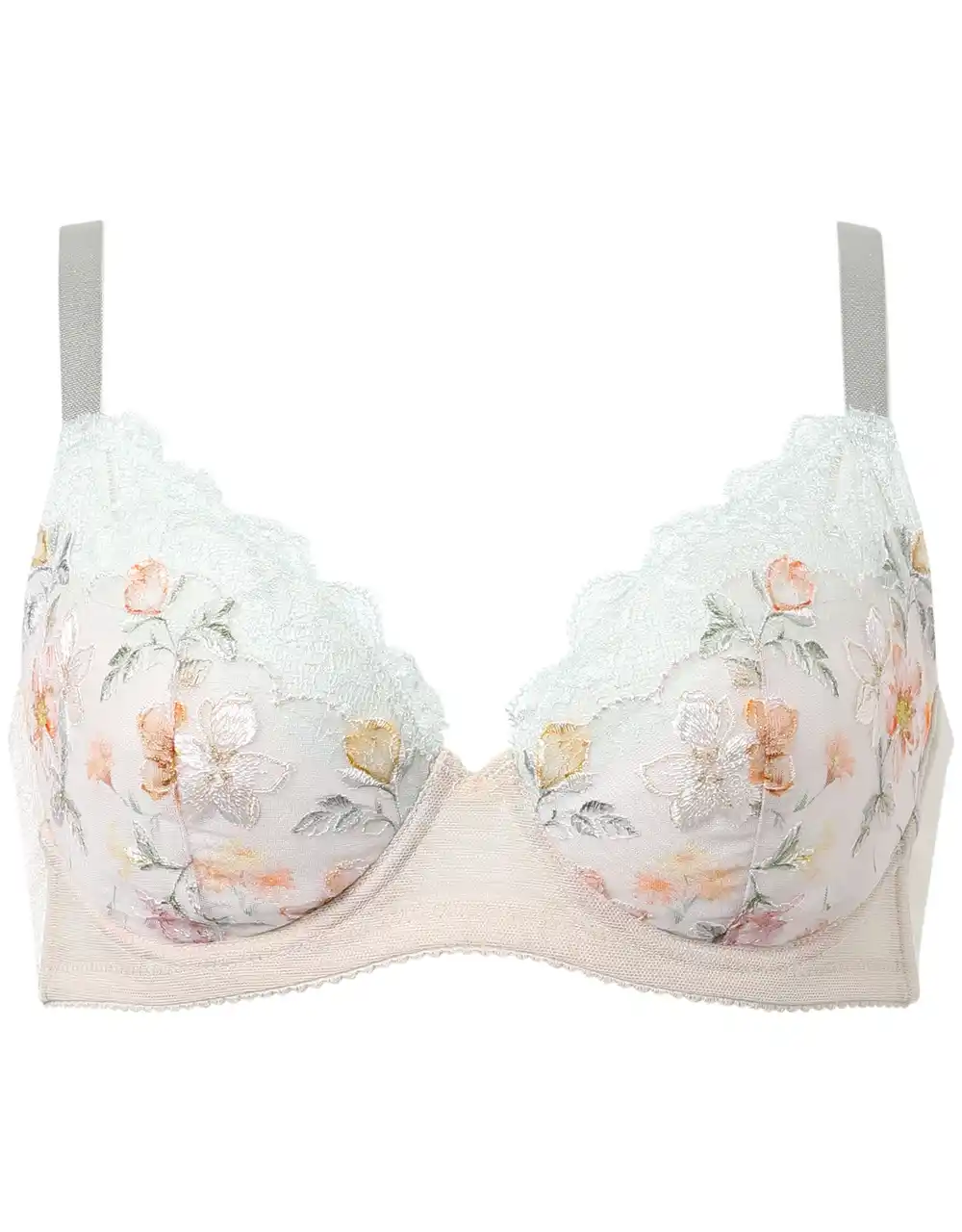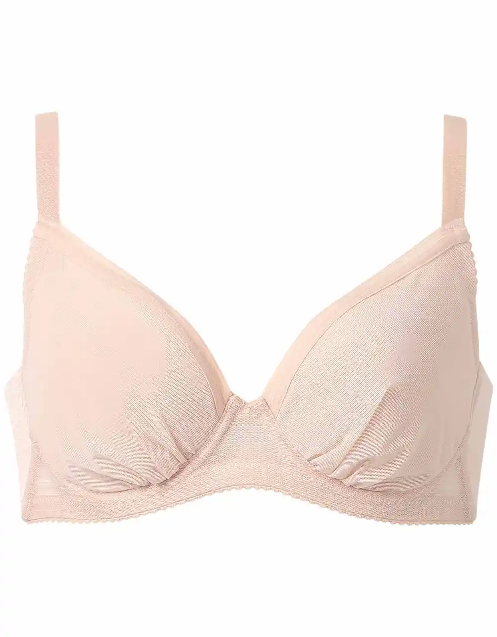 | バージスライン全体に高密度不織布を使用し、ワイヤーがなくても下からバストをささえてバスト位置をアップ。密着感のあるストレッチ素材でバストにフィットしやすく、さまざまなバストに対応します。カップ全体を包むパワーネットで、バストを中央に寄せながら高さをおさえてコンパクトに。サイドをととのえることでバストが広がりにくく、脇もすっきり見せます。 | |||||||||||||||||||