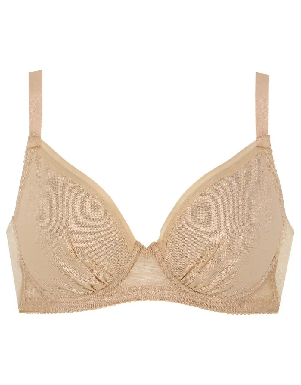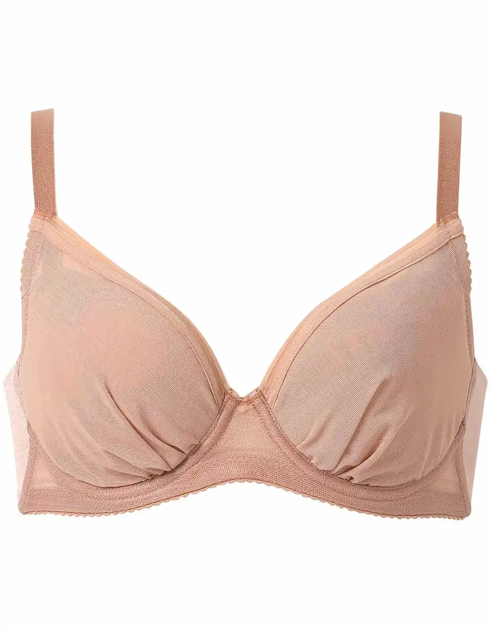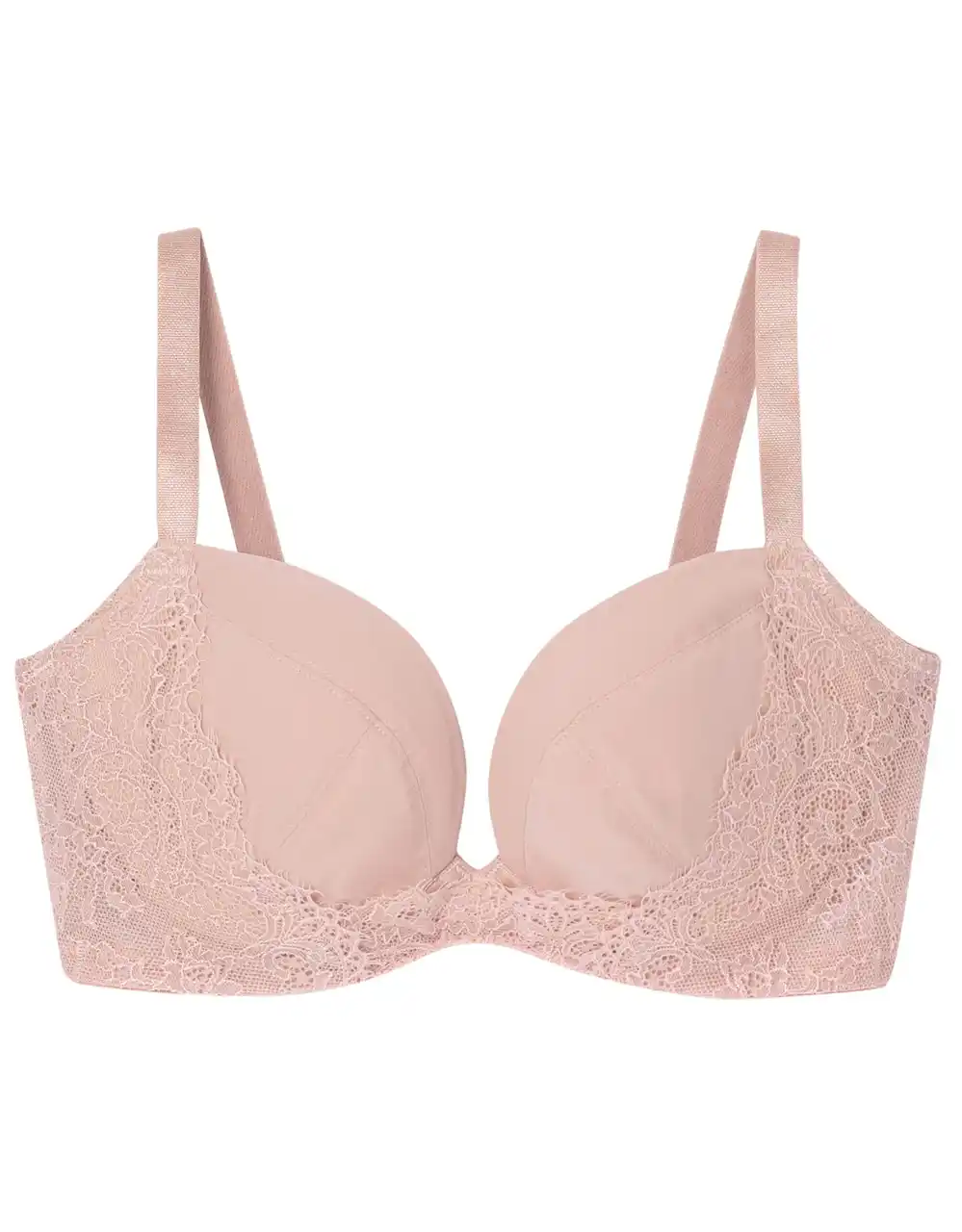 | バージスライン全体に高密度不織布を使用し、ワイヤーがなくても下からバストをささえてバスト位置をアップ。密着感のあるストレッチ素材でバストにフィットしやすく、さまざまなバストに対応します。カップ全体を包むパワーネットで、バストを中央に寄せながら高さをおさえてコンパクトに。サイドをととのえることでバストが広がりにくく、脇もすっきり見せます。 | |||||||||||||||||||